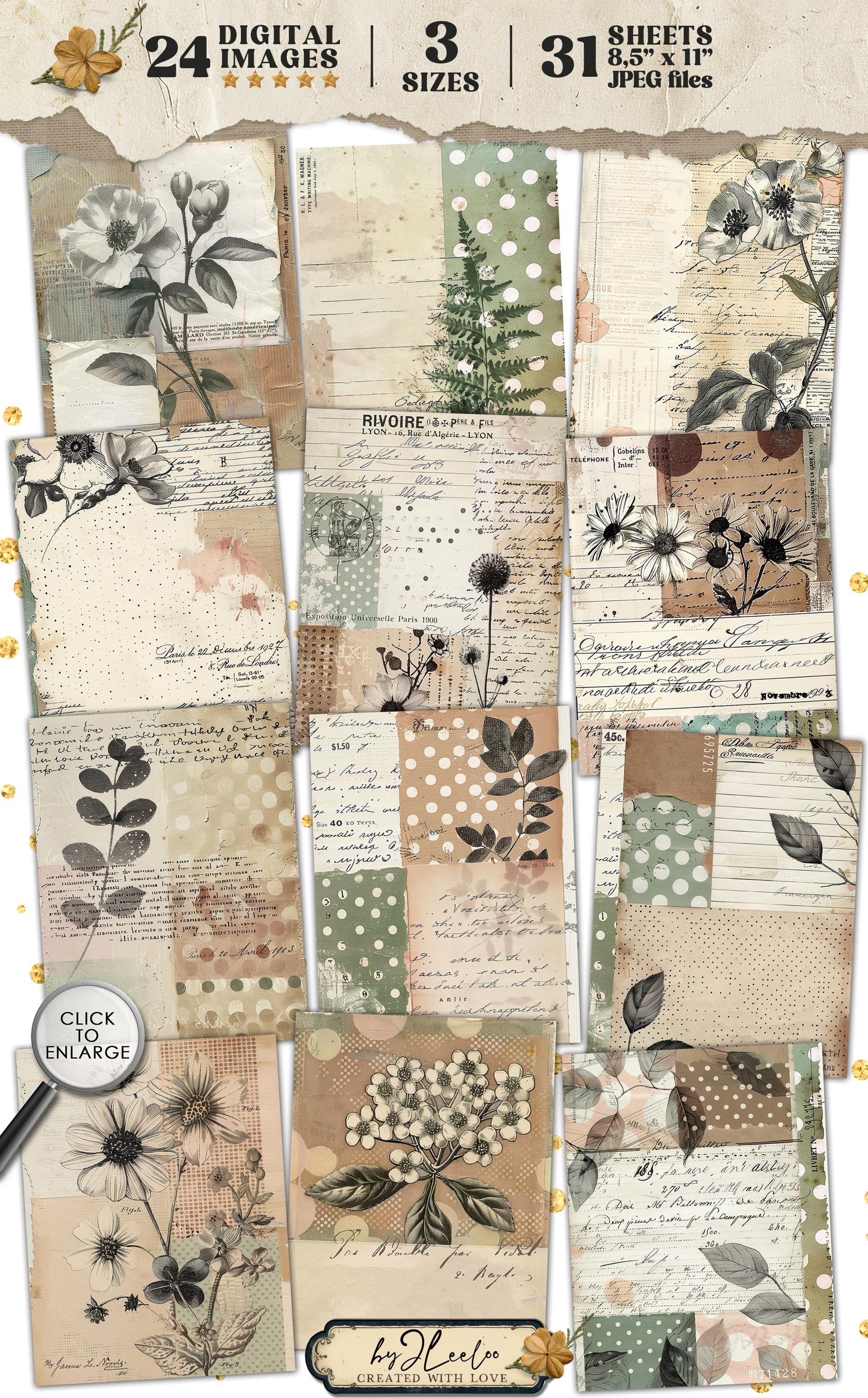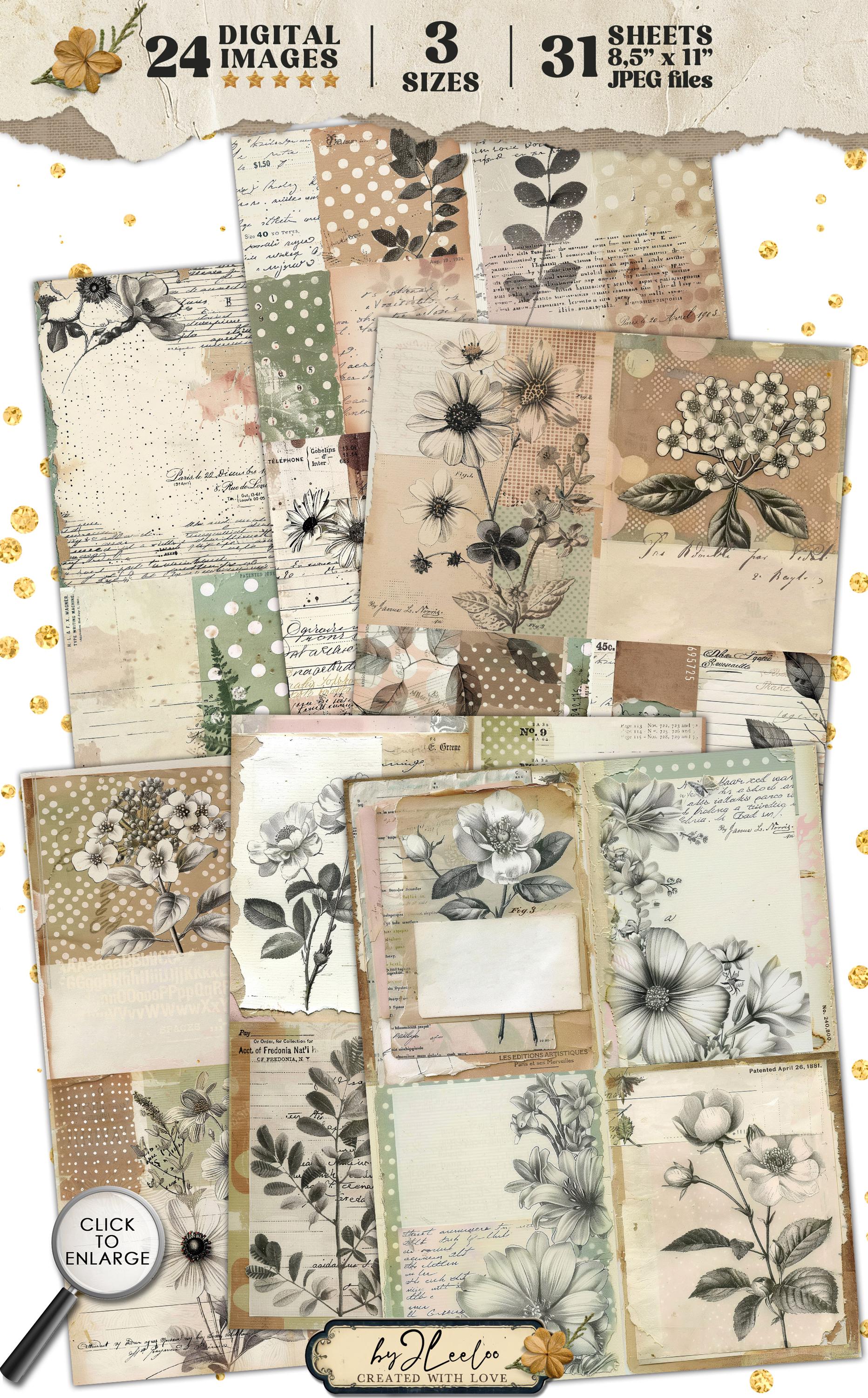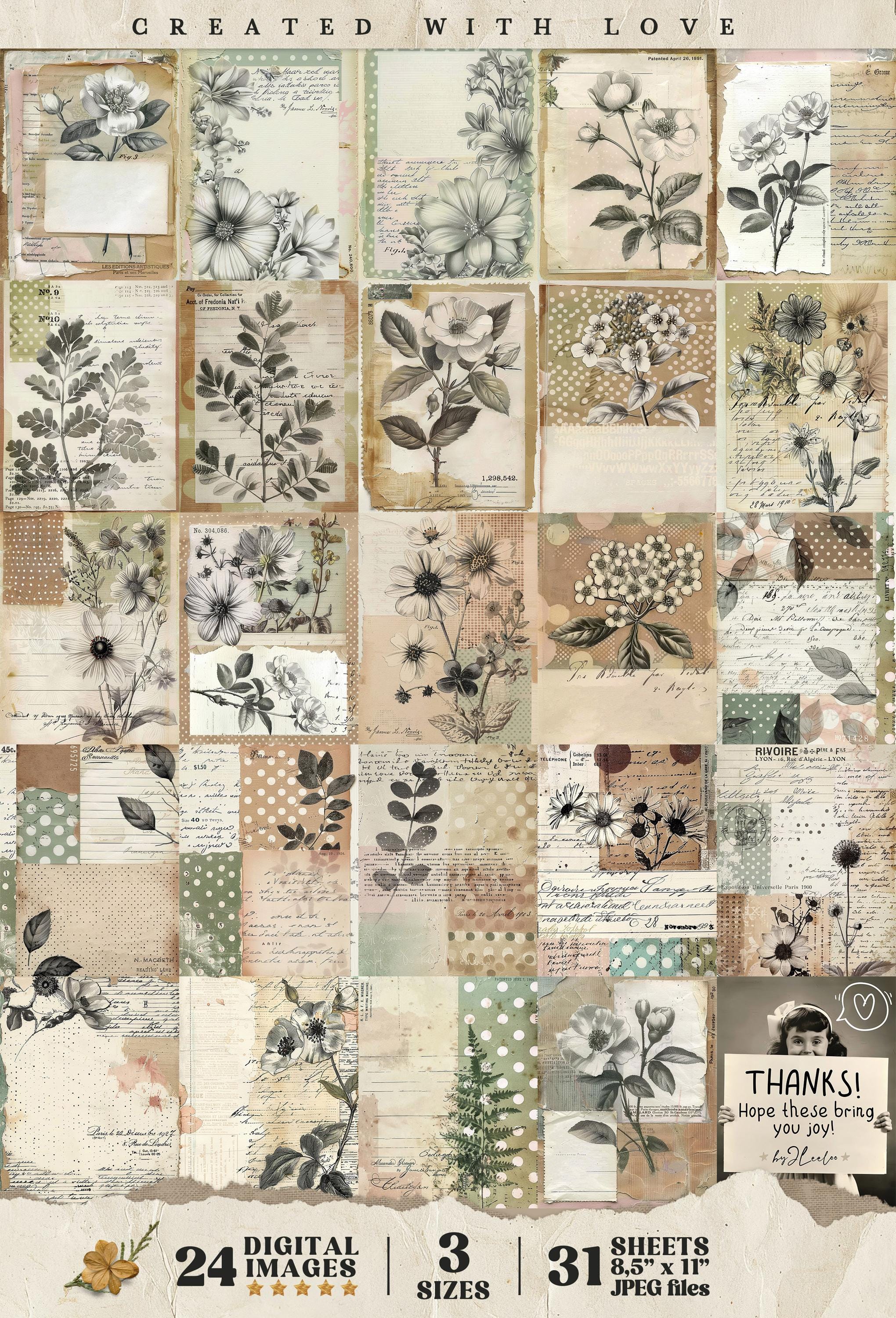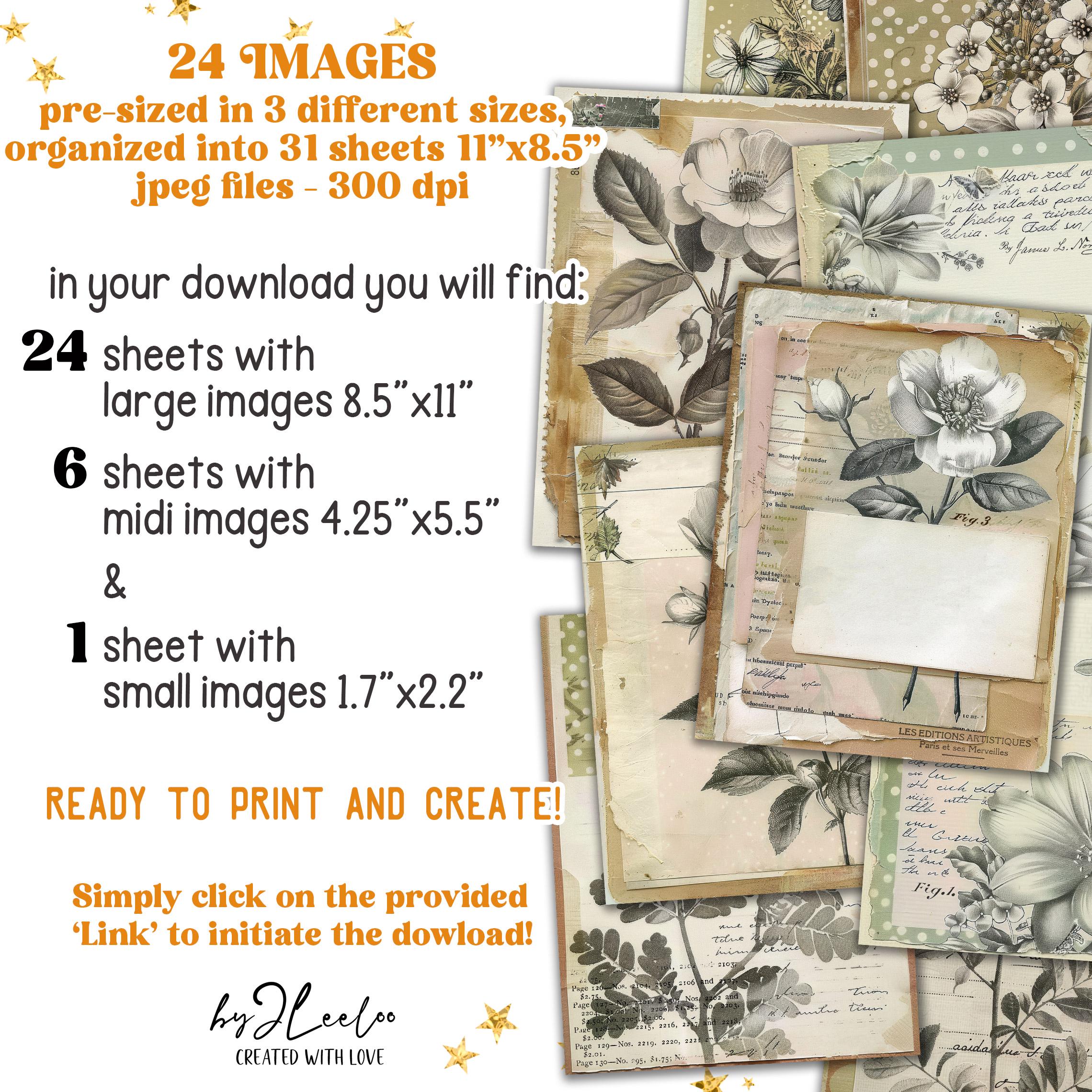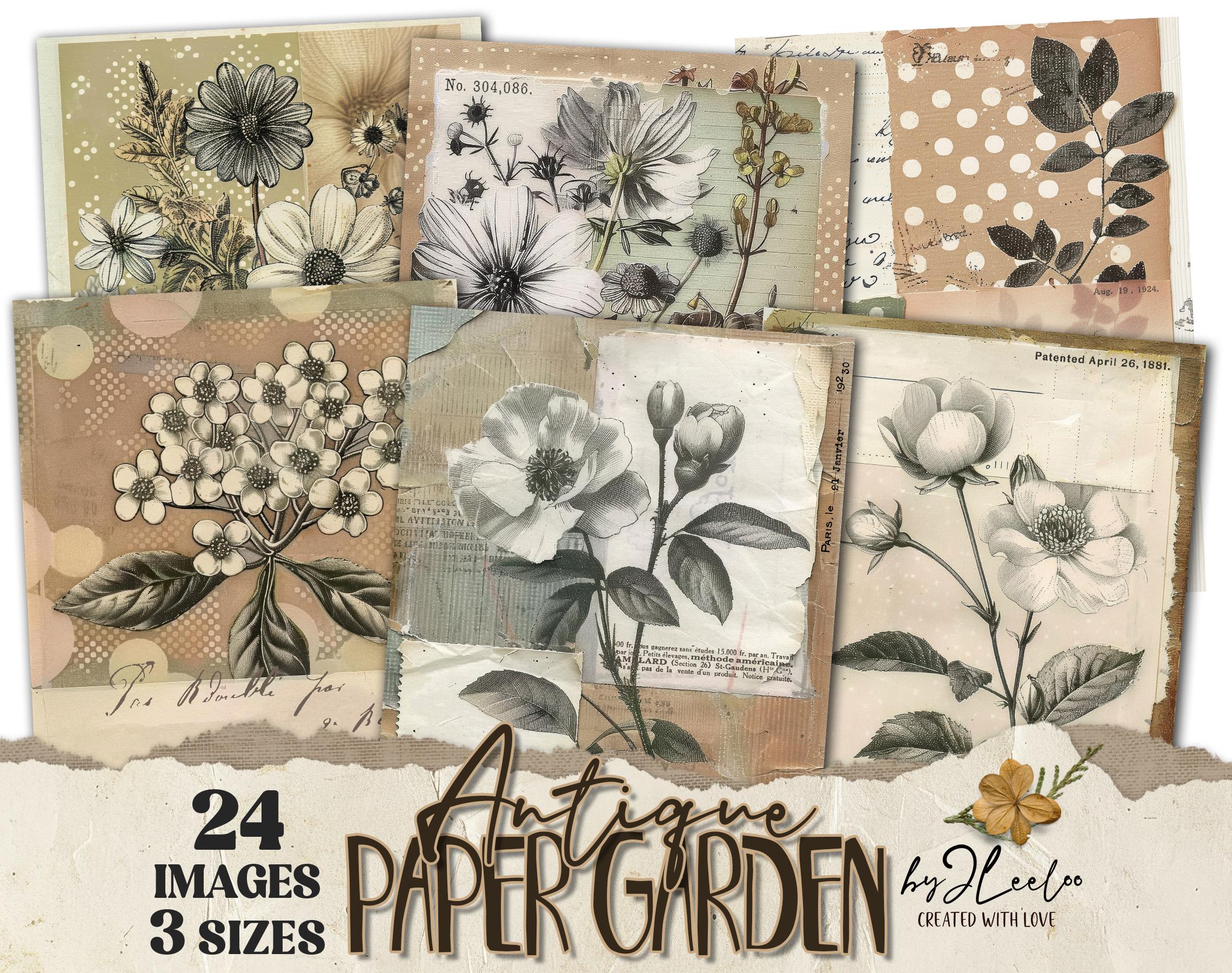 Antique PAPER GARDEN 24 background 3 Sizes | Junk Journal Collage Pages | Backdrop quirky cards | scrapbook digital | Commercial Use | pp932