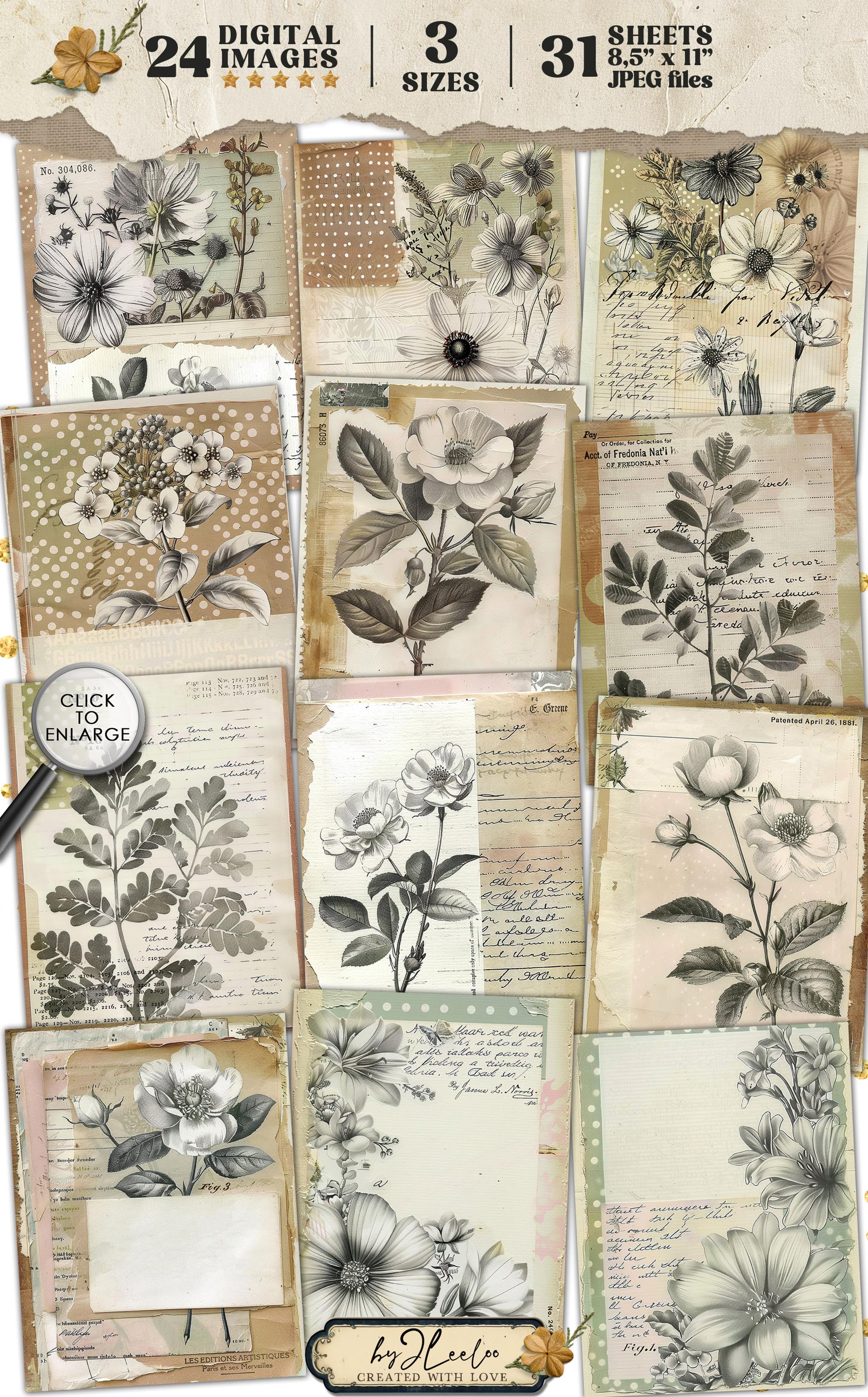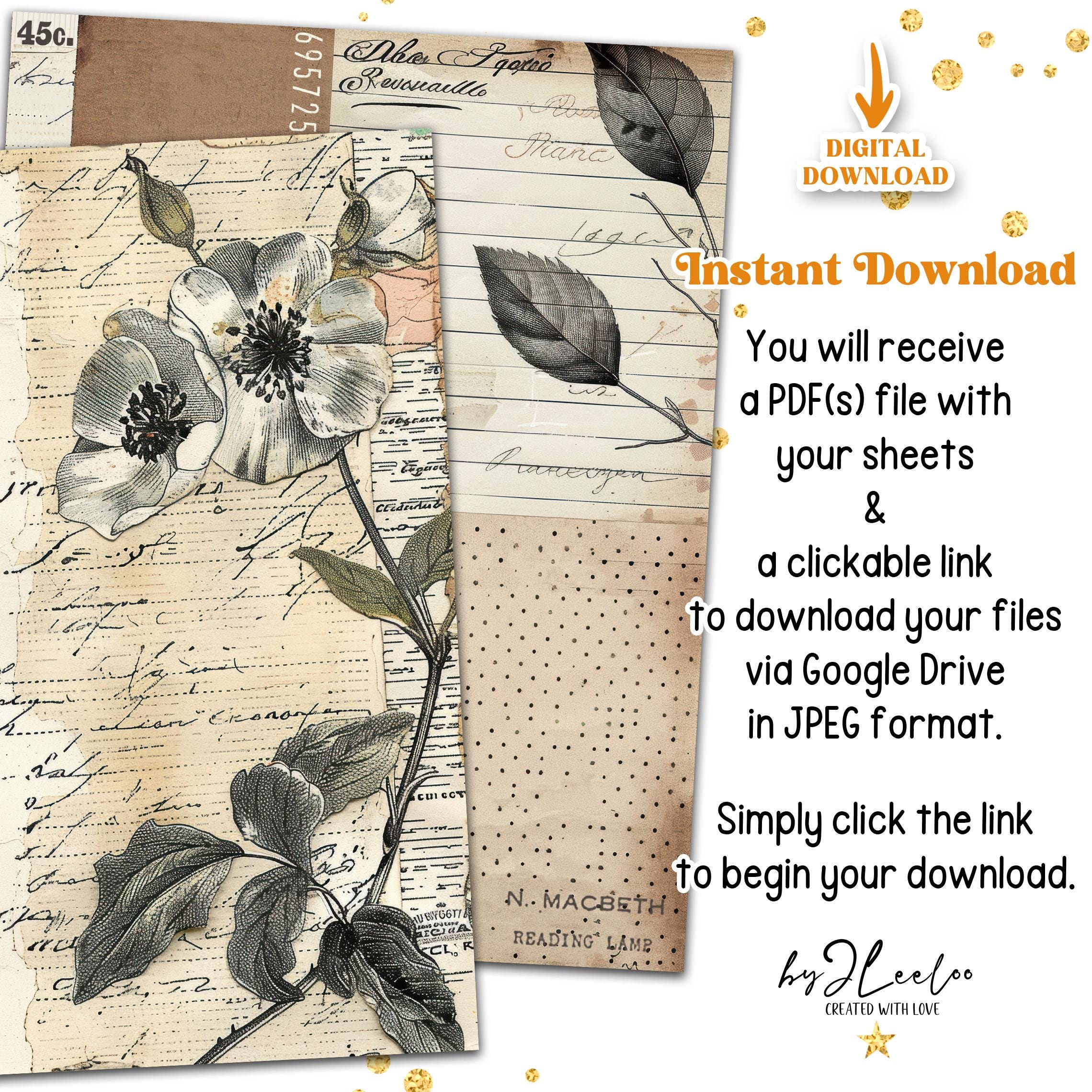 Each design blends antique ephemera, delicate botanical illustrations, and aged handwriting, evoking a nostalgic charm that adds an elegant, poetic touch to your projects. Whether you're creating journal pages, collage art, or vintage-inspired stationery, these printable images will bring a unique aesthetic to your work.