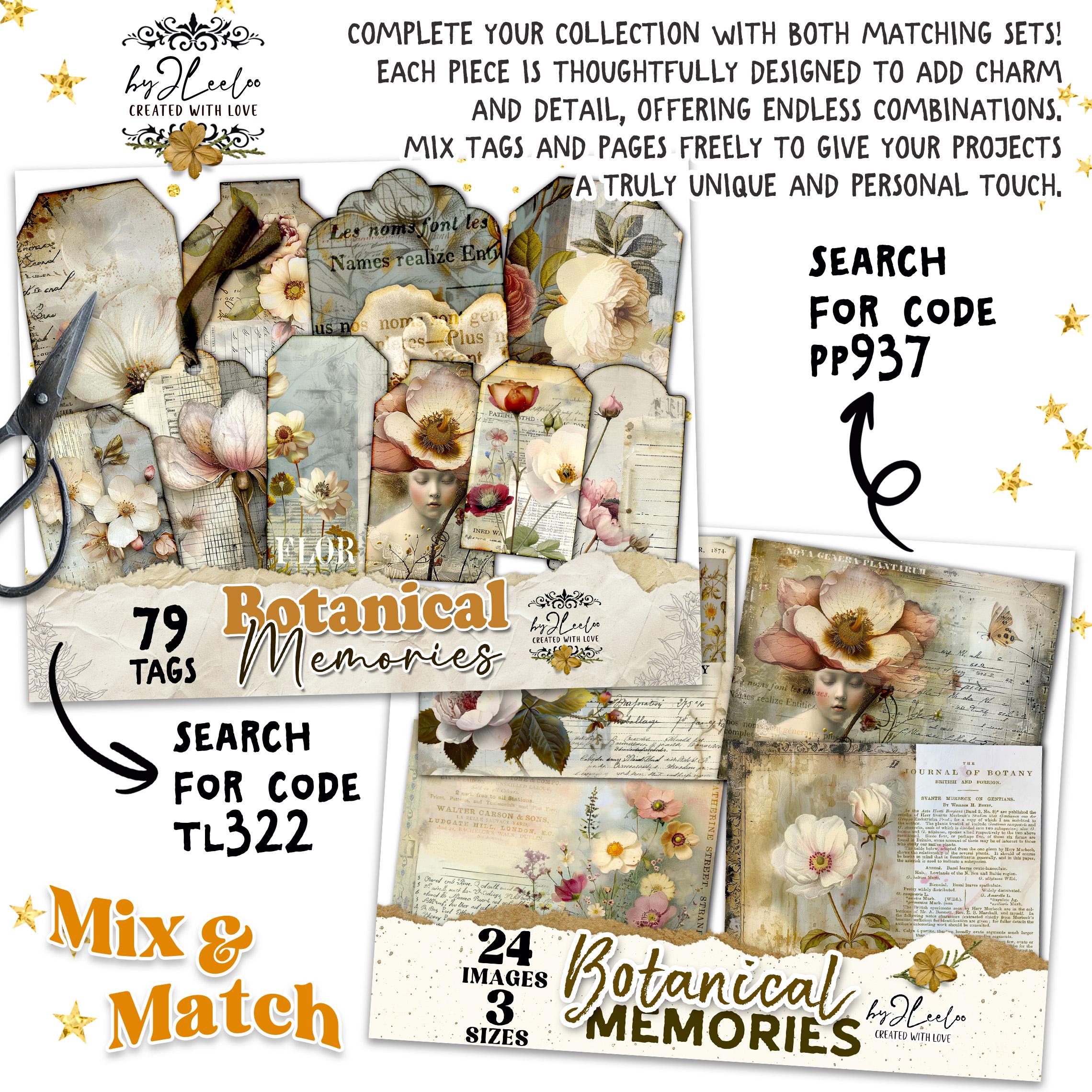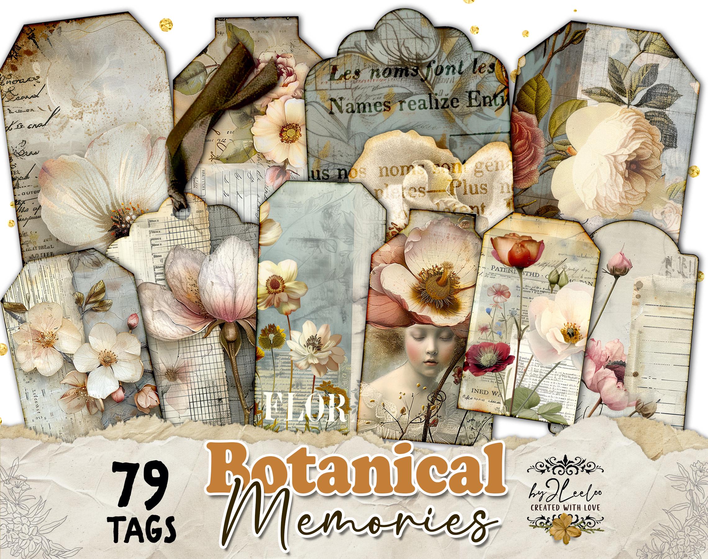 BOTANICAL MEMORIES 79 images tags | Vintage Floral Junk Journal Ephemera, Scrapbooking, Paper Crafts Instant Download Commercial Use | tl322