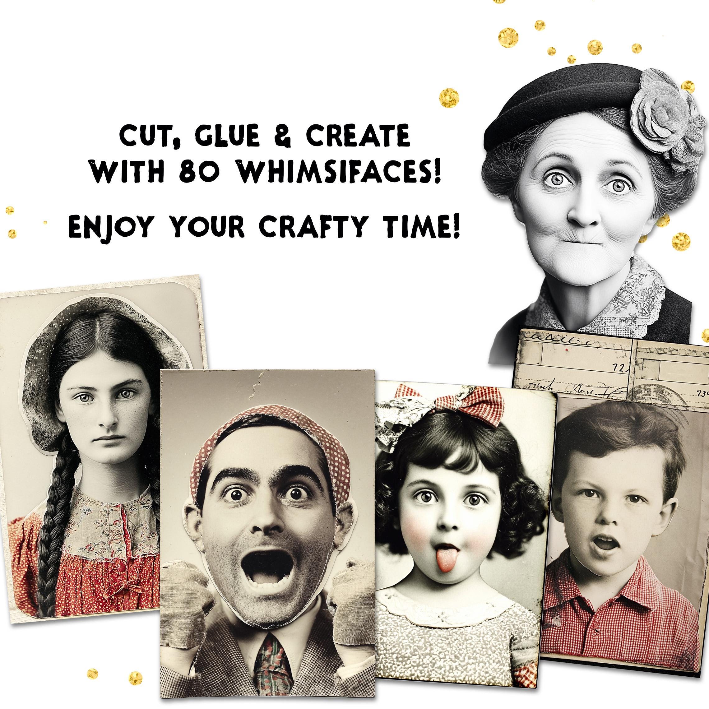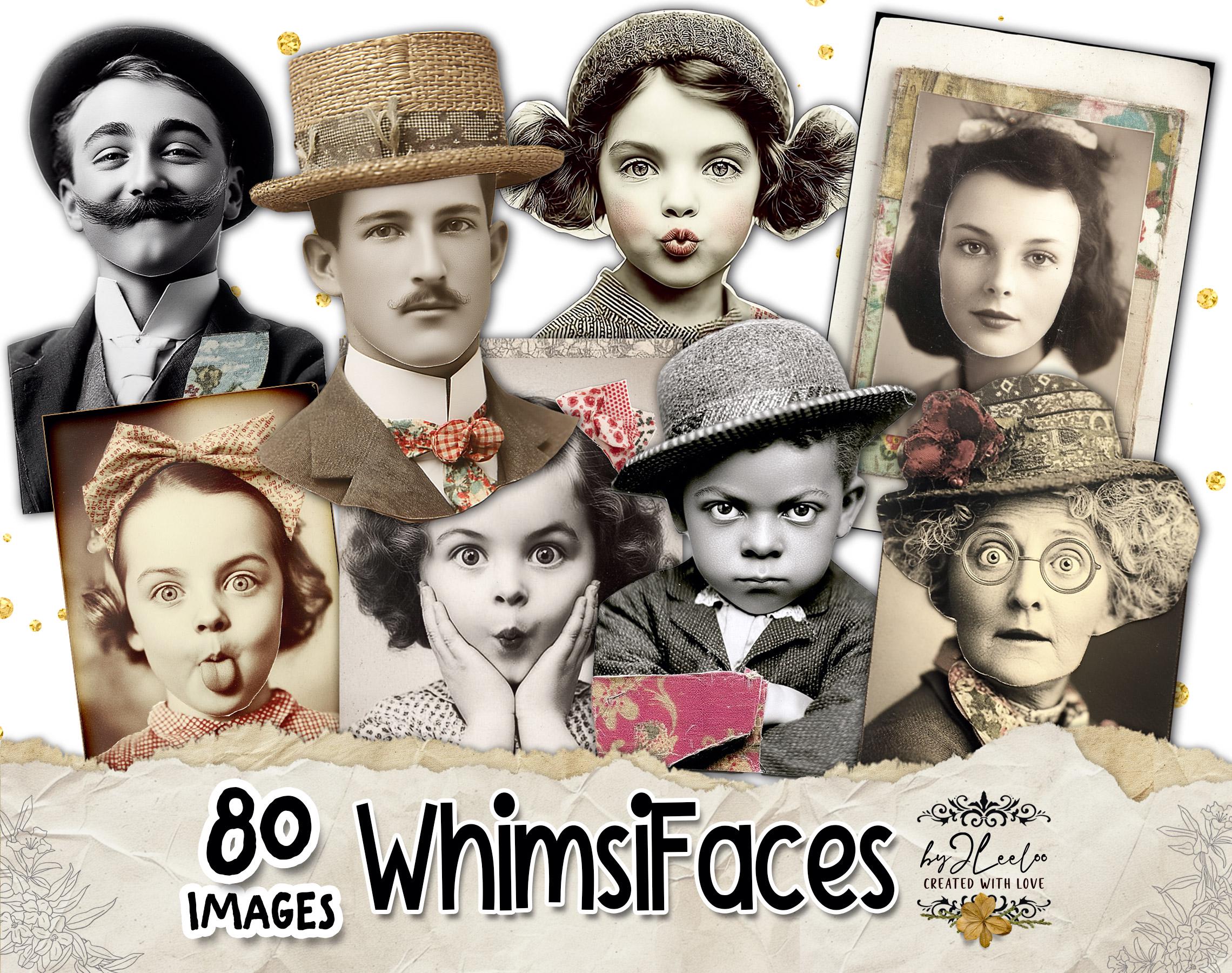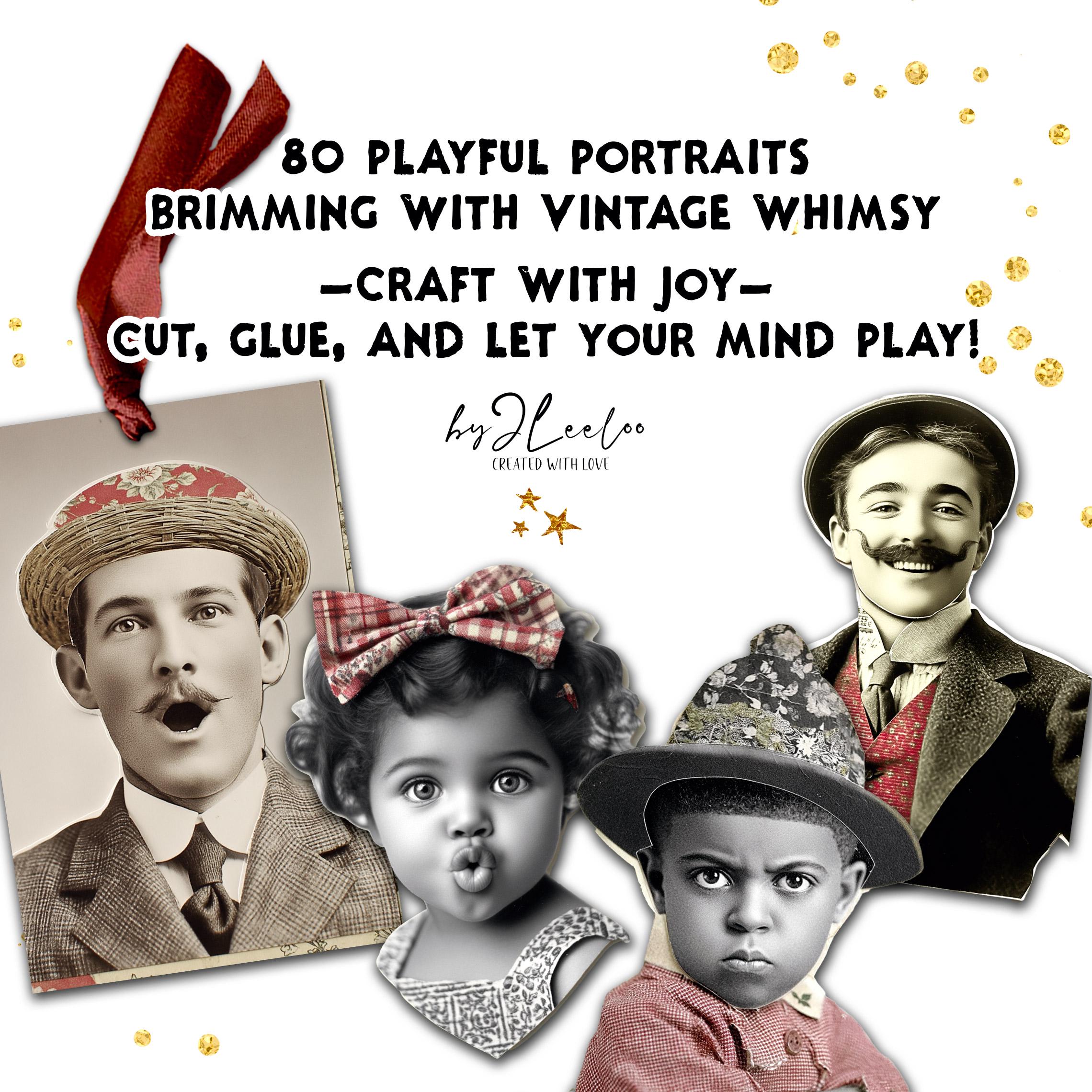 WHIMSIFACES โ 80 Vintage Portrait with Red Collage Accents, Quirky Ephemera for Junk Journals Scrapbooking and Mixed Media Printable | cp039