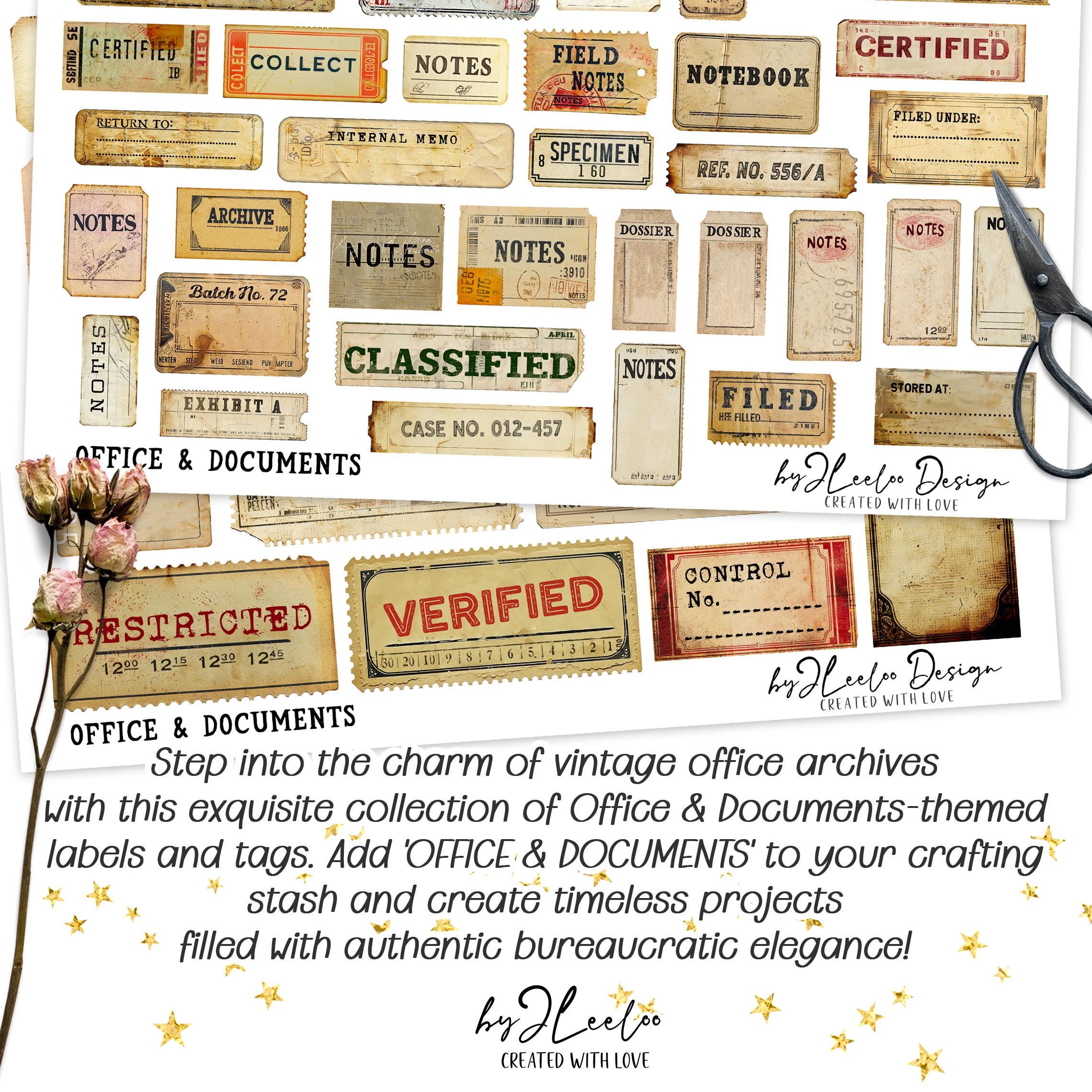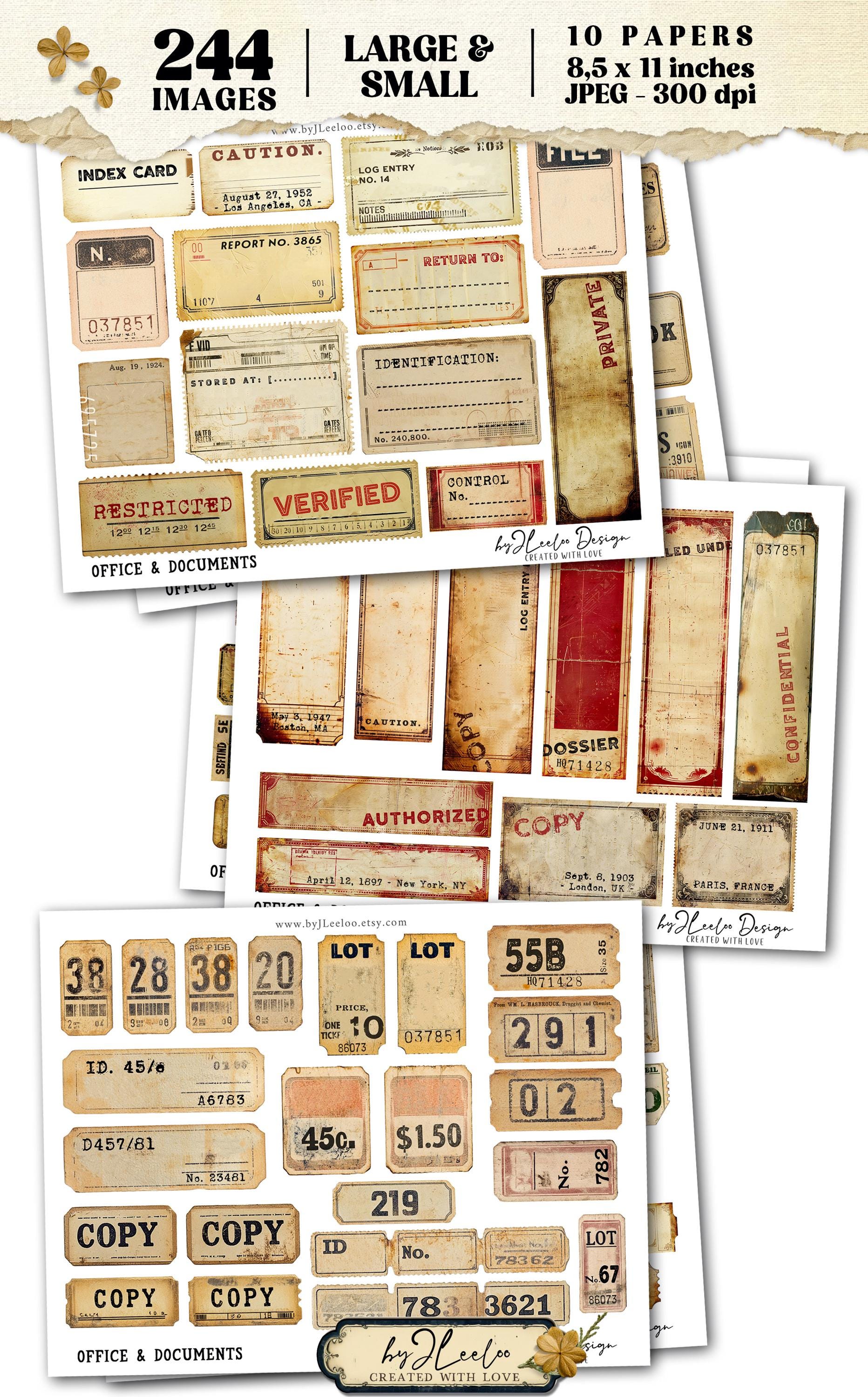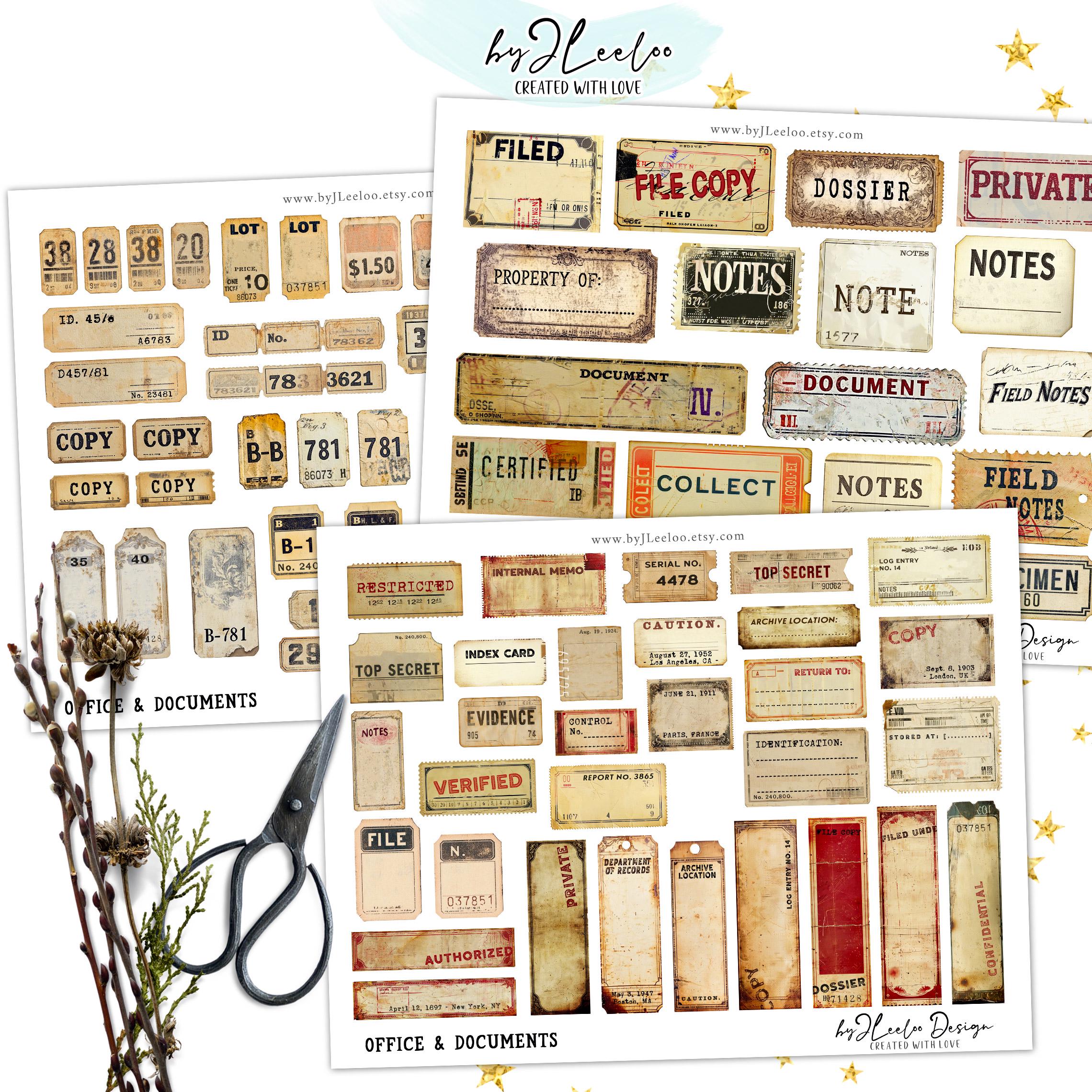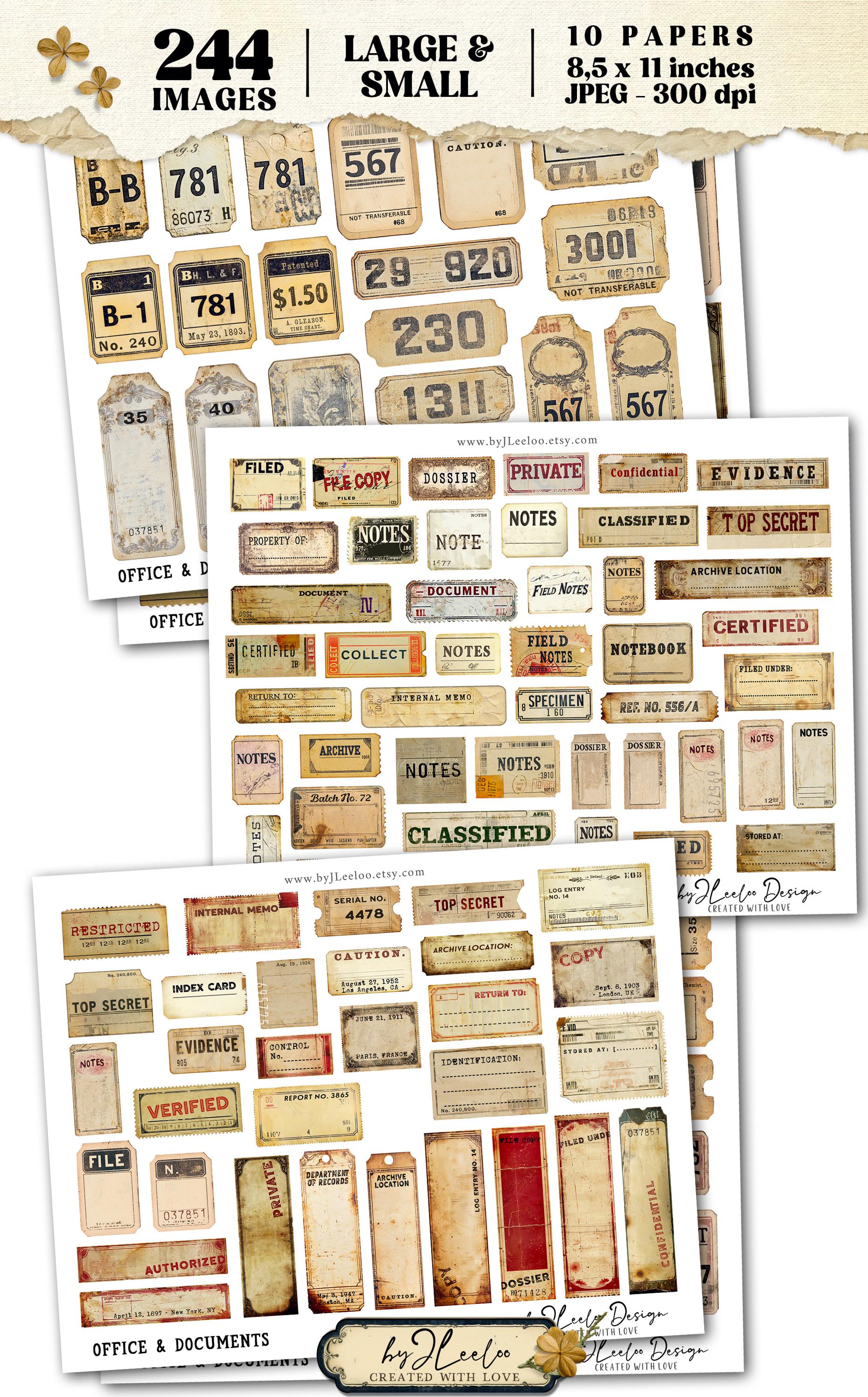 OFFICE and DOCUMENTS 244 Tags and Labels Vintage - Printable Ephemera, Junk Journal, Scrapbooking, Digital Download | Commercial Use | tl318