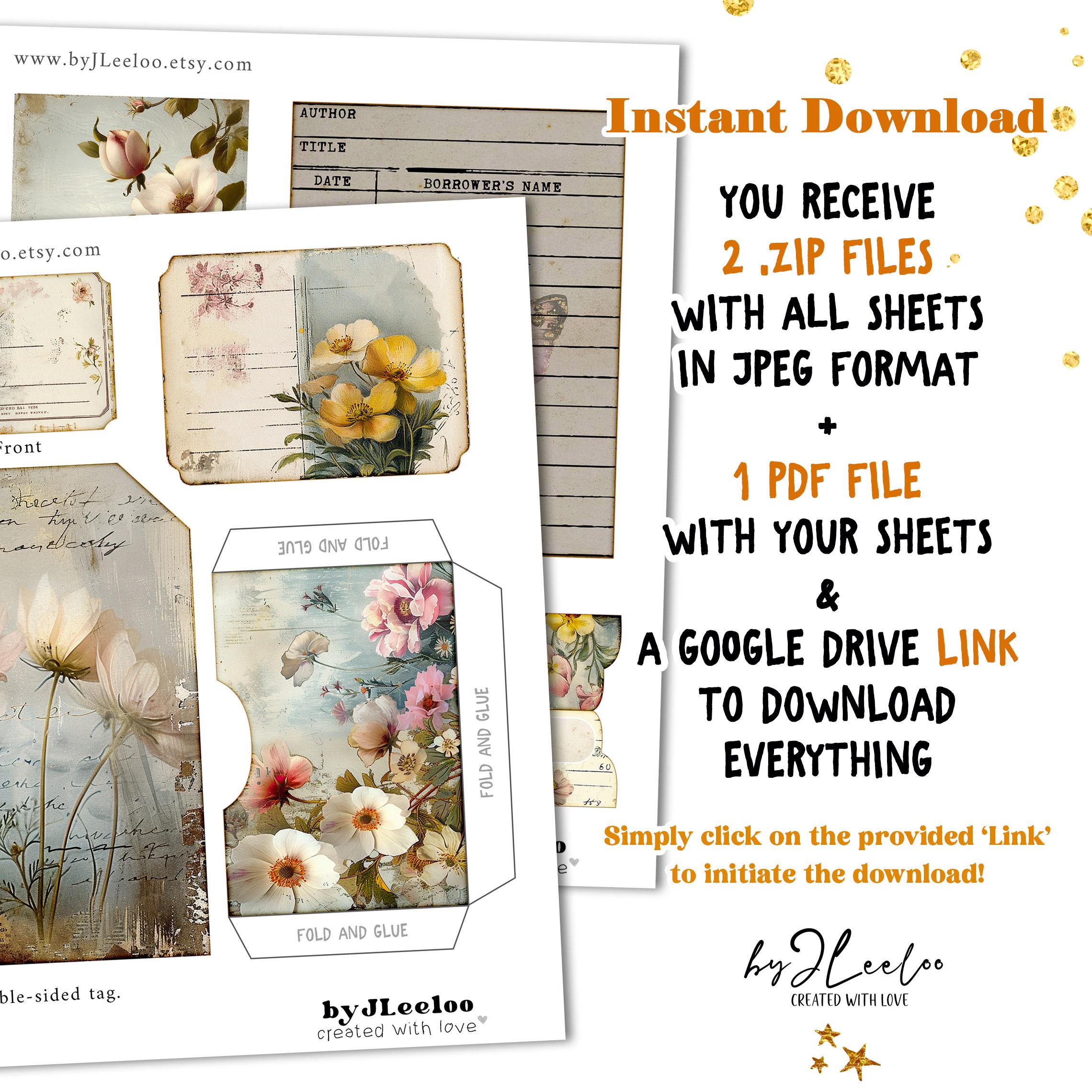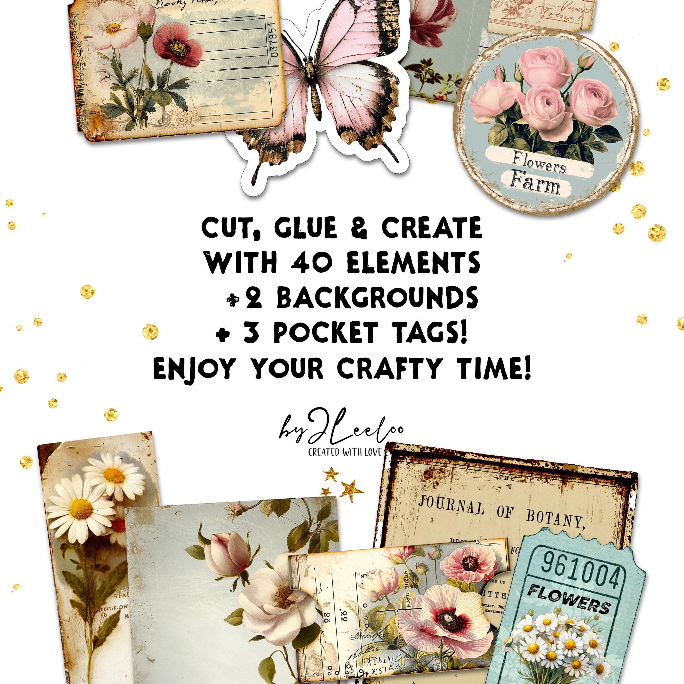 This delightful kit is filled with flower-themed pocket tags, vintage-style ephemera, and coordinated backgroundsโperfect for junk journaling, scrapbooking, collage, and more. Cut, glue, and let your creativity bloom in a magical paper garden. Have fun crafting! โจ