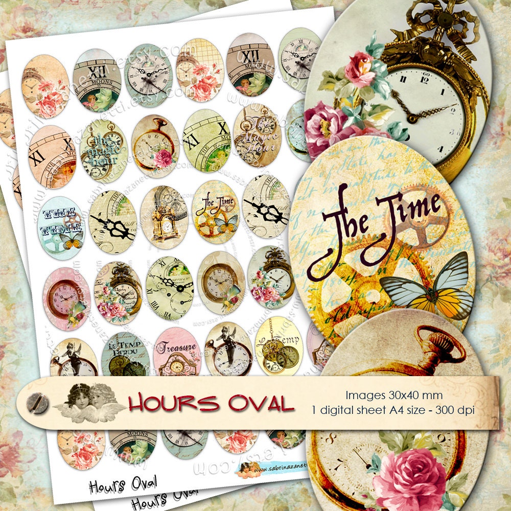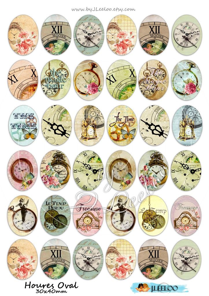 Instant Download - Digital collage sheets printable - Digital paper - Oval digital images 30x40mm for pendants, jewelry and your craft and artwork.