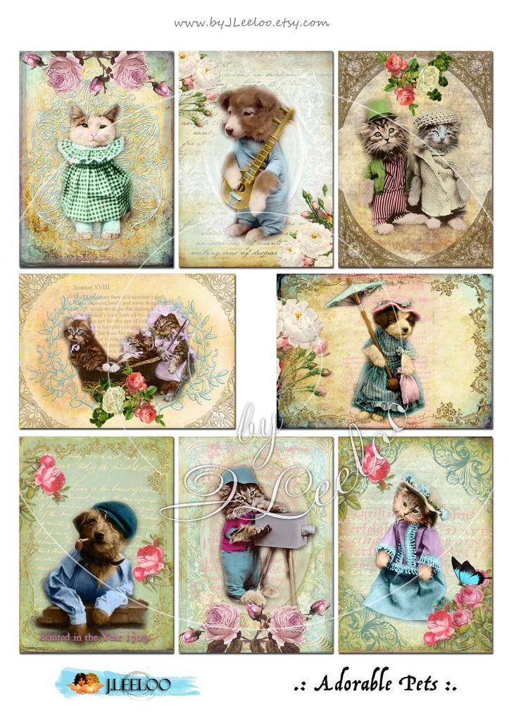 Digital collage sheet - Printable instant download paper for your artwork - scrapbook, diary art, hang tags, jewelry holders, invitations or annuncements, greetings cards or backing cards.... for your creativity!