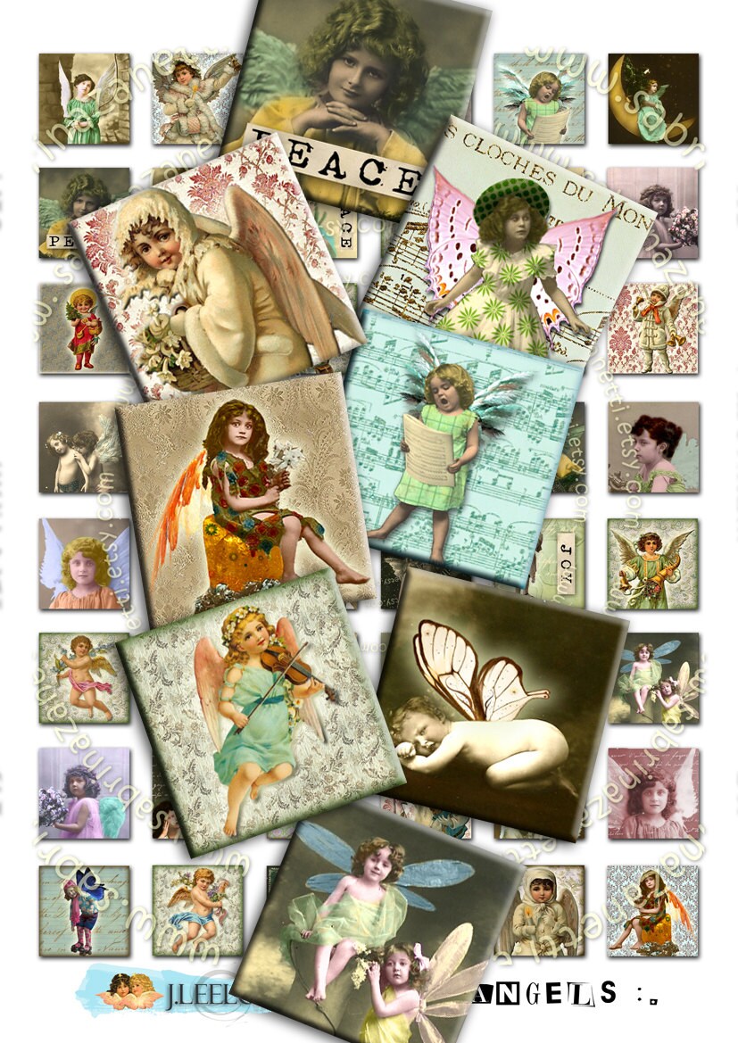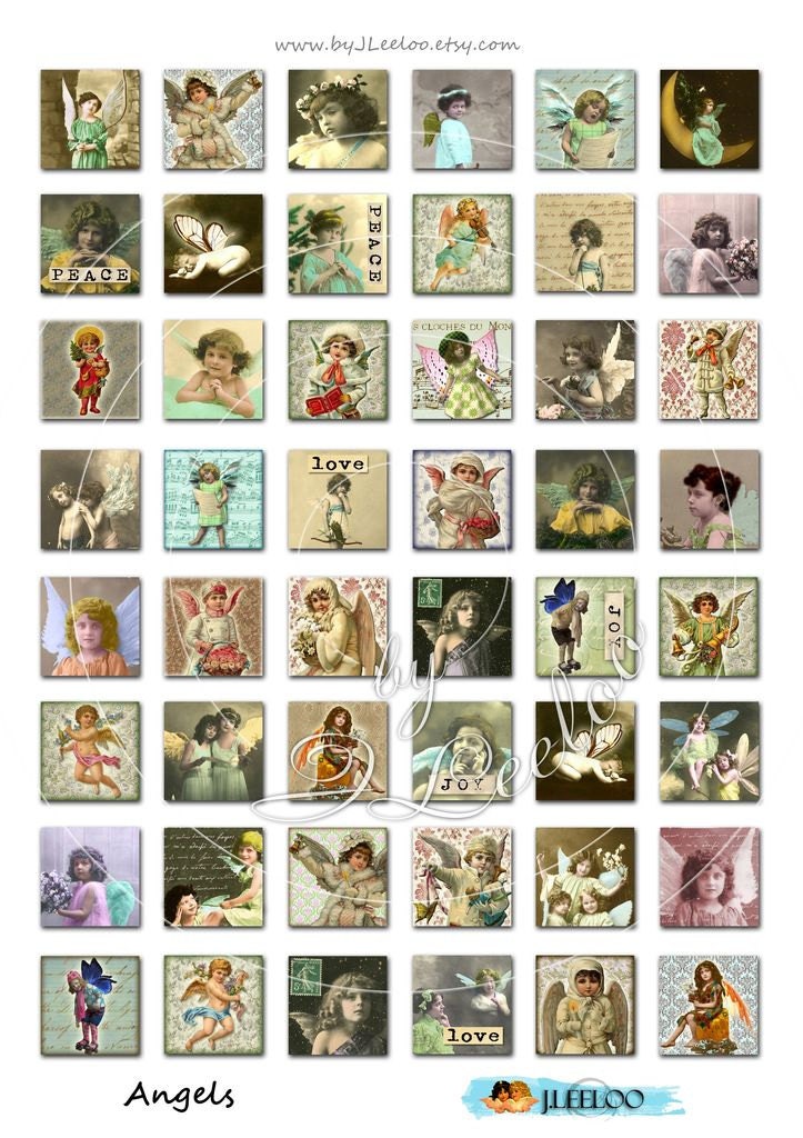 Angels - Digital collage sheets - Square Christmas images download to print for jewelry, resin pendants, glass cabochon, charms, magnets, stickers, scrap book, hang tags, a great supply for your craft project.