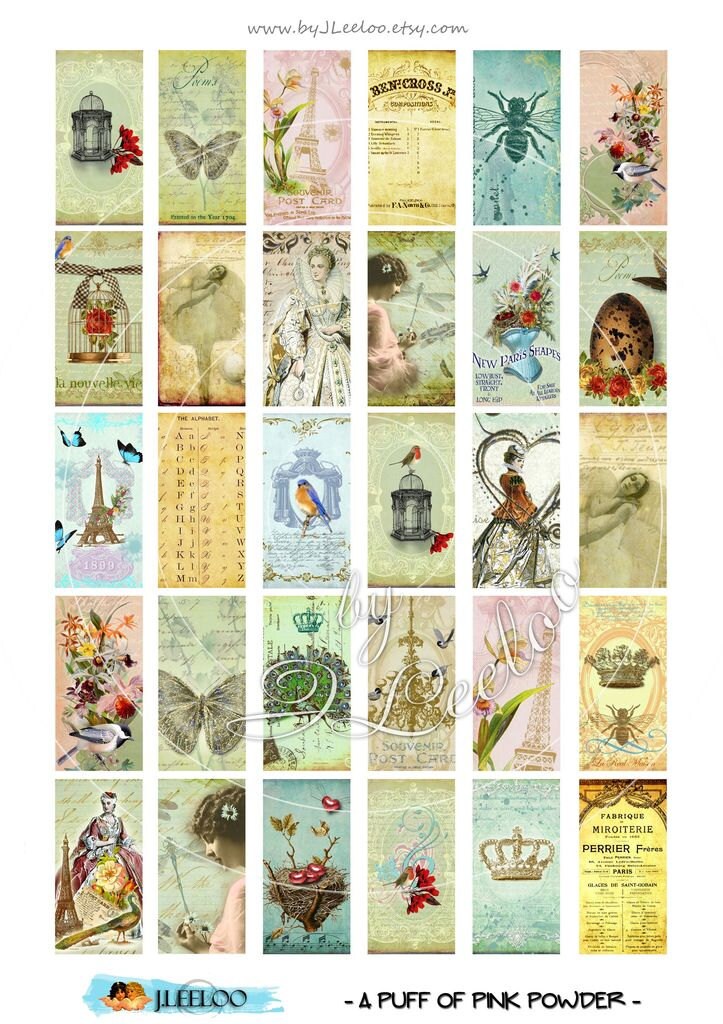 A Puff of Pink Powder - Digital paper sheet download - Images to print for jewelry making, domino tiles, scrabble tiles, scrapbooking, magnets, art and crafts.
