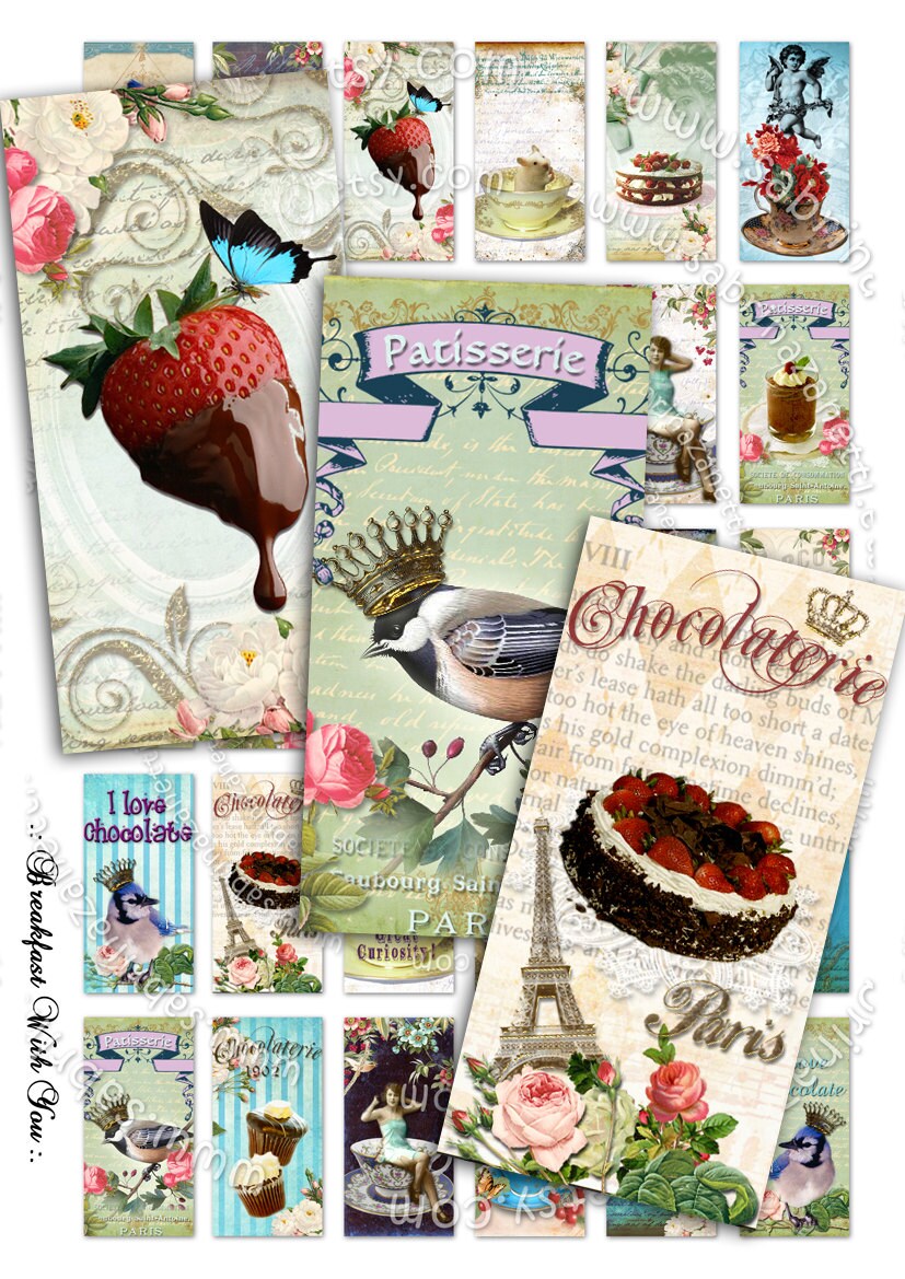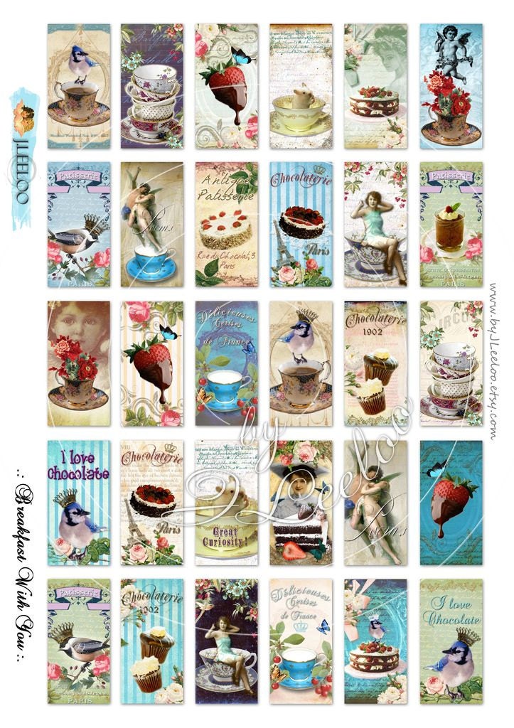 Breakfast with You - Digital paper sheet download - Images to print for jewelry making, domino tiles, scrabble tiles, scrapbooking, magnets, art and crafts.