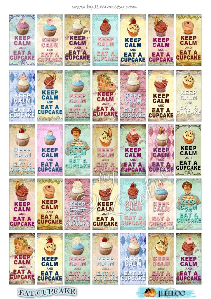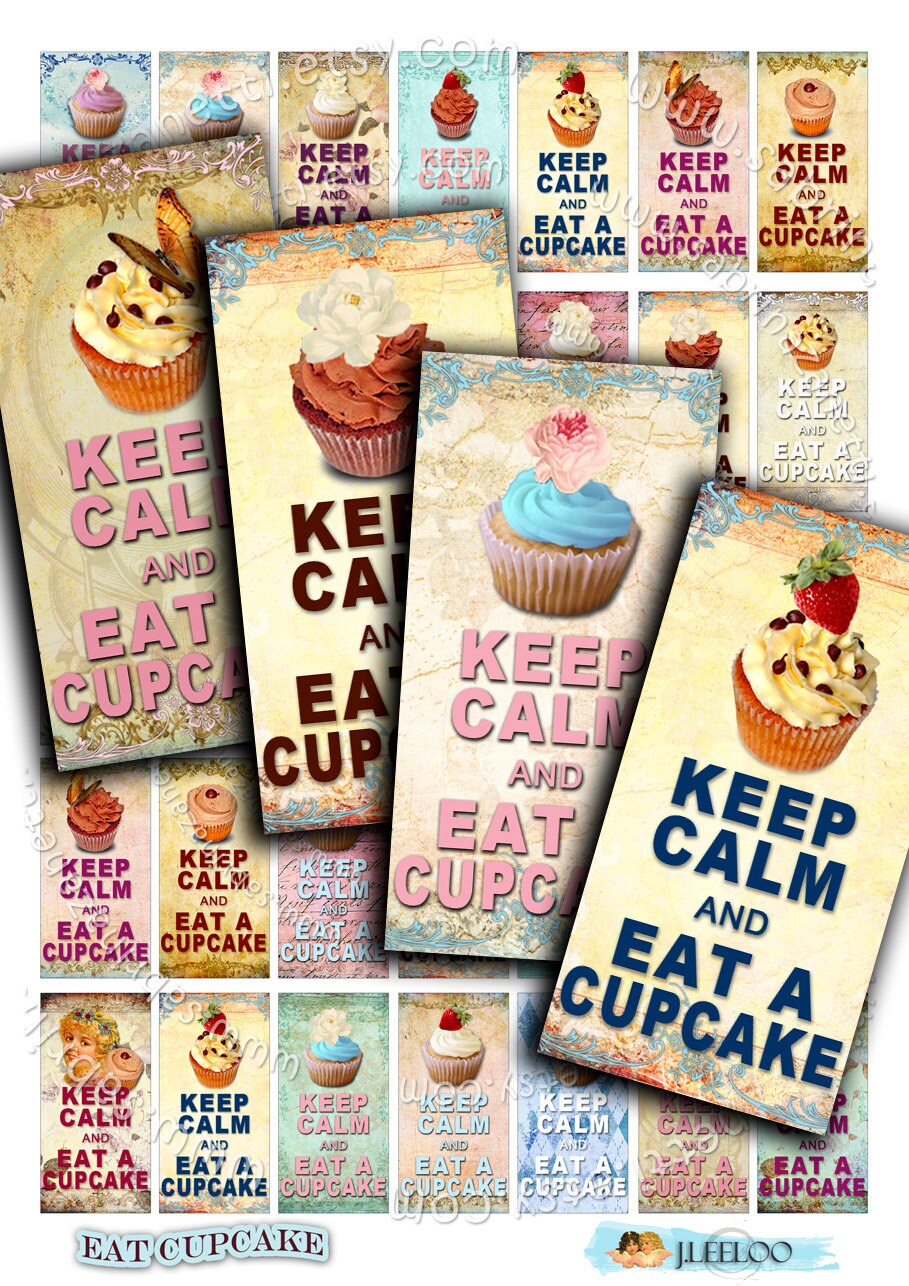 Eat Cupcake - Digital collage sheet download - Images to print for jewelry making, domino tiles, scrabble tiles, scrapbooking, magnets, art and crafts.