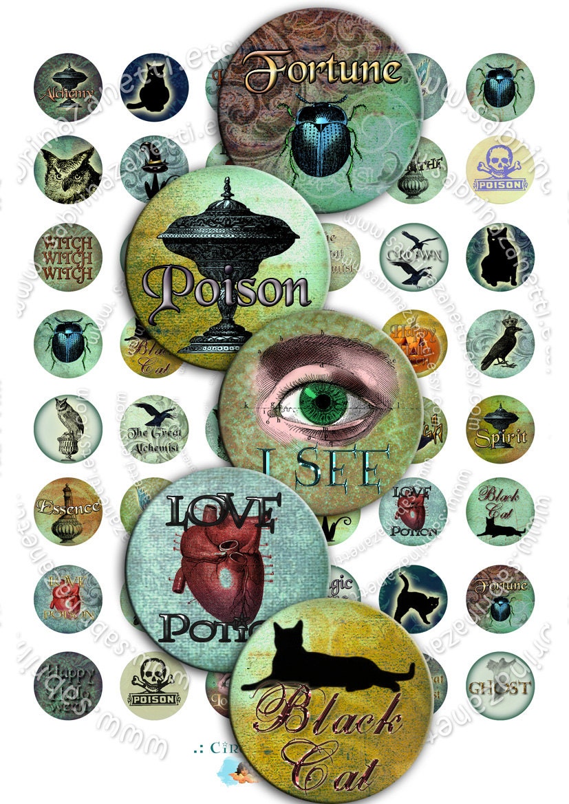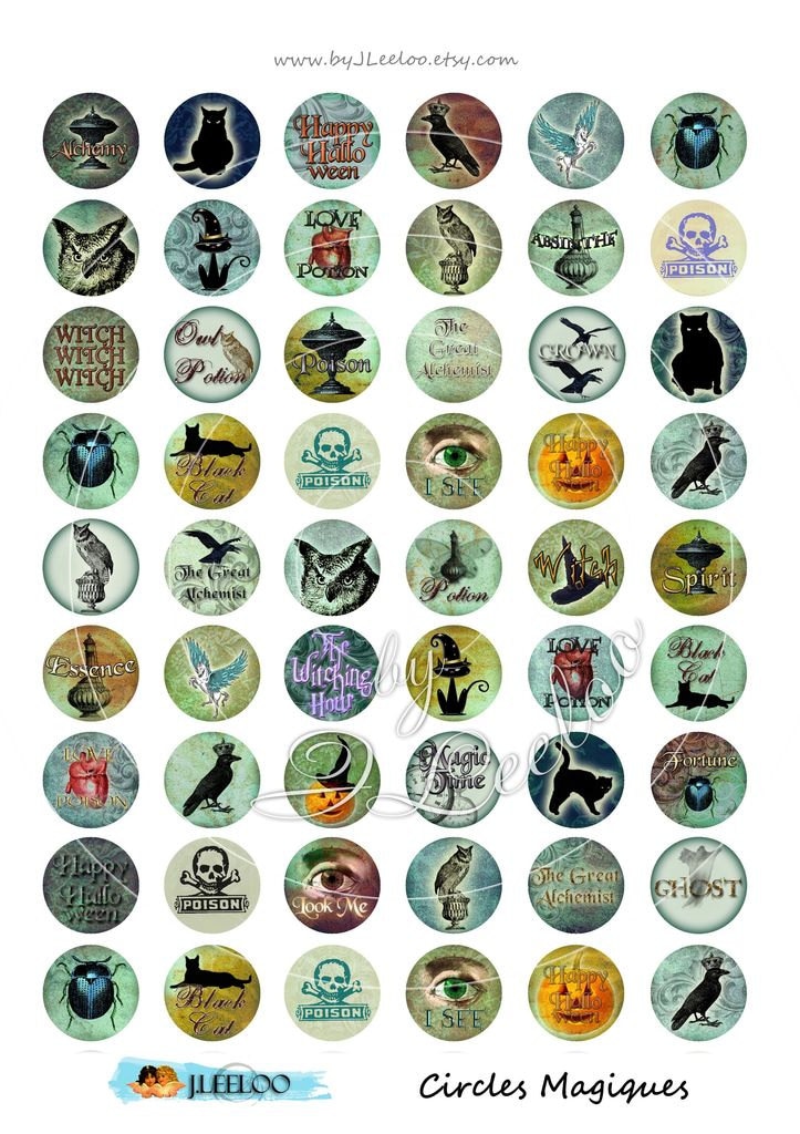 Circle Magique - Instant download printable - scary digital collage sheets - circle images for your crafting project - glass cabochons, jewelry, resin pendants, hang tags, rings, earrings and all your need for your art.