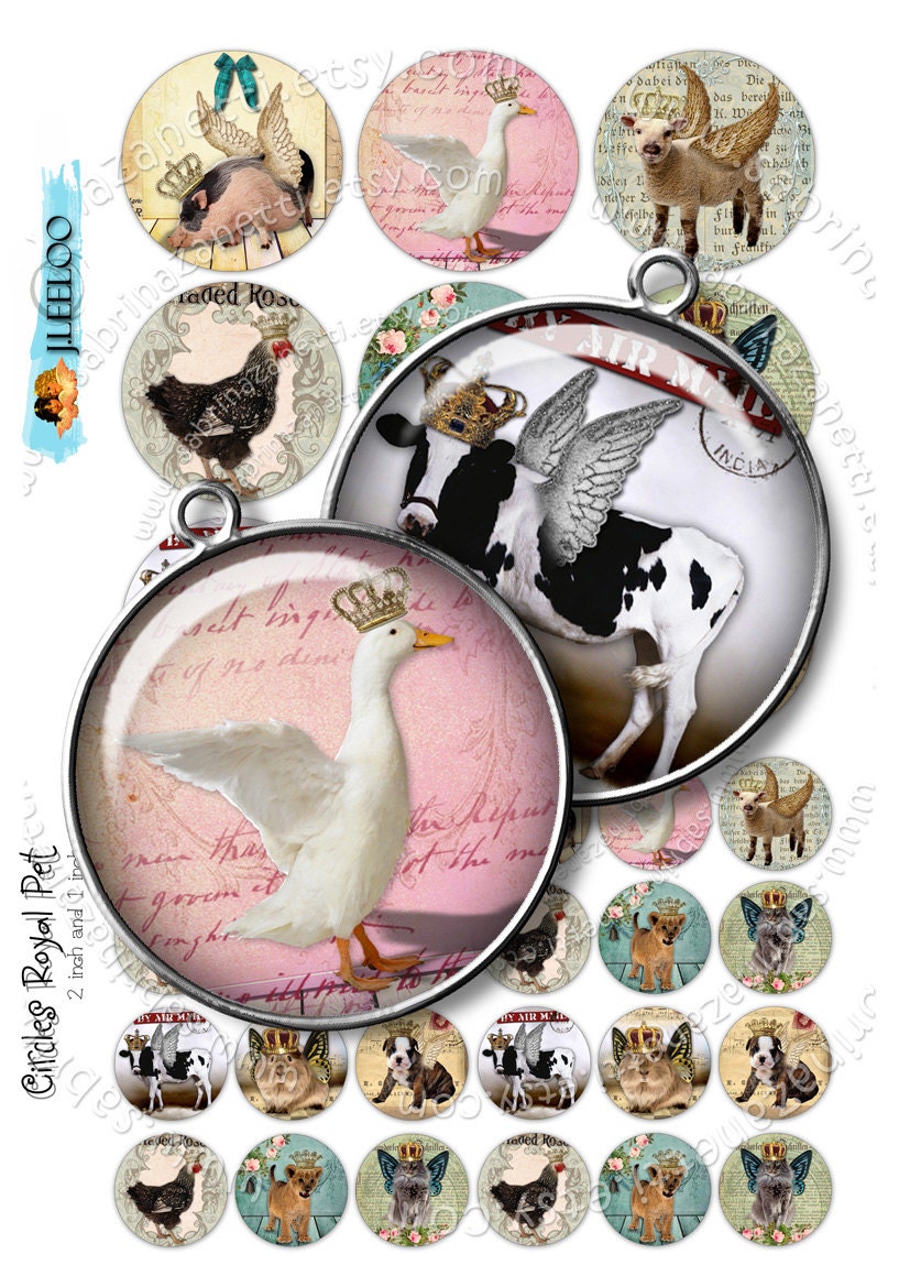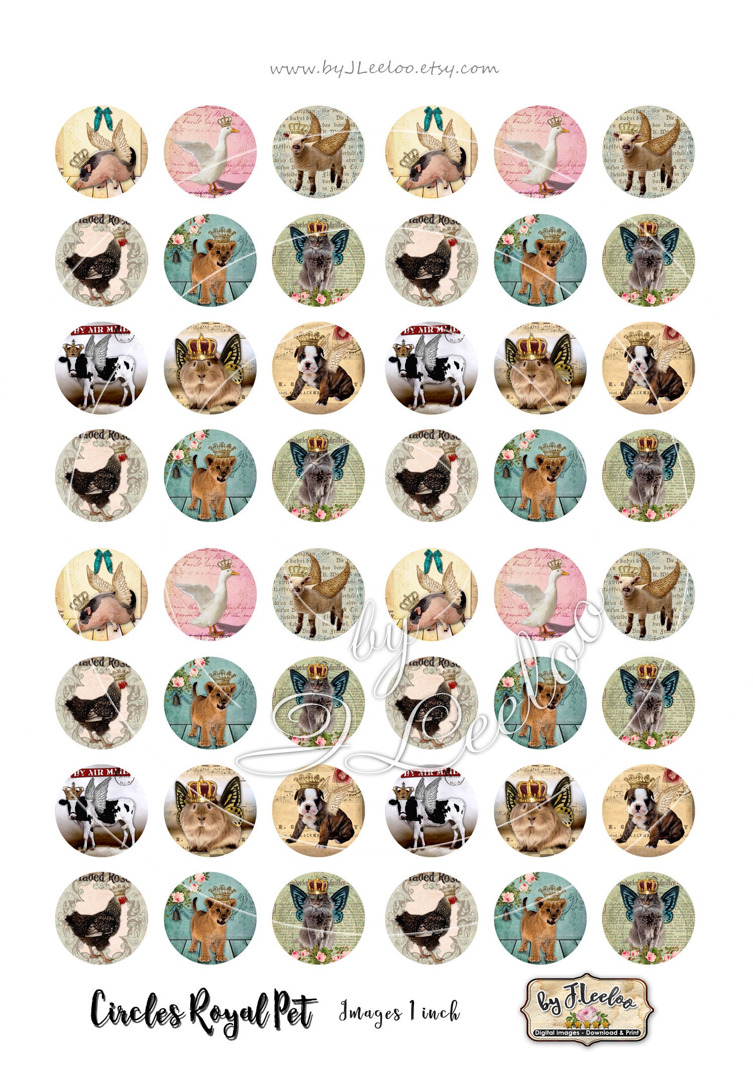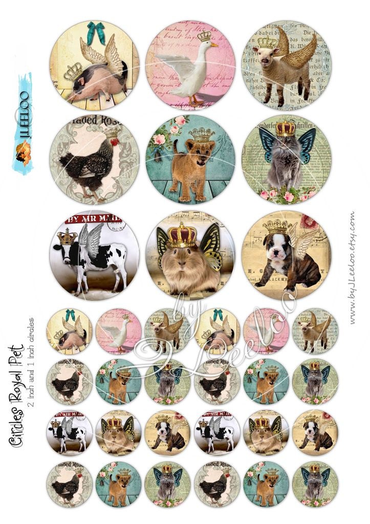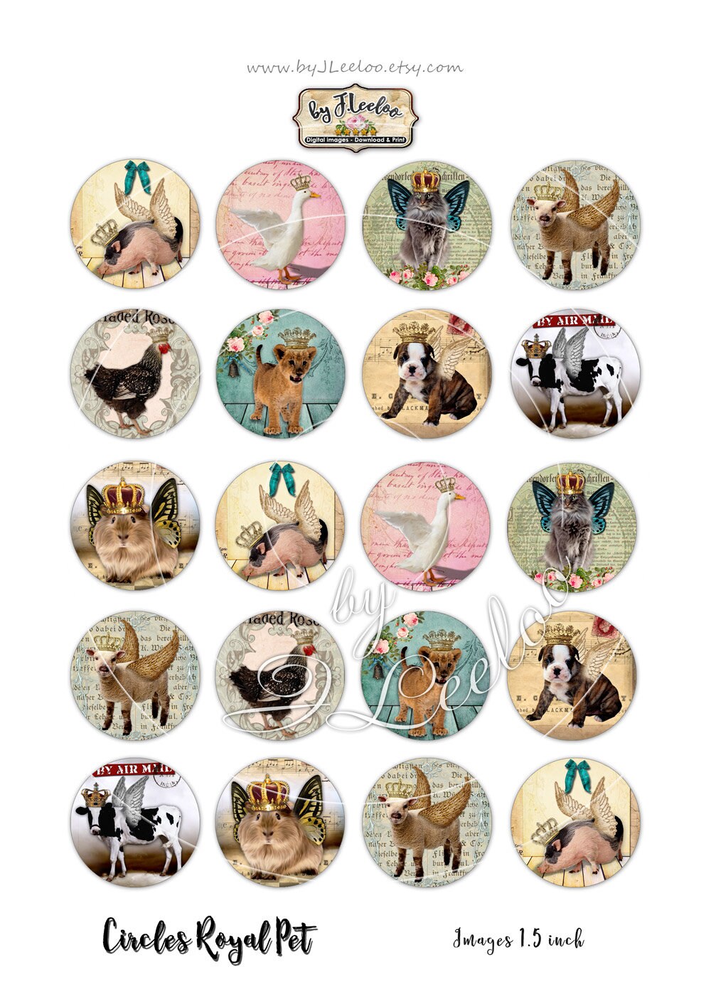 Royal Pet - Instant download printable - digital collage sheets - circle images for your crafting project - glass cabochons, jewelry, resin pendants, hang tags, rings, earrings and all your need for your art.