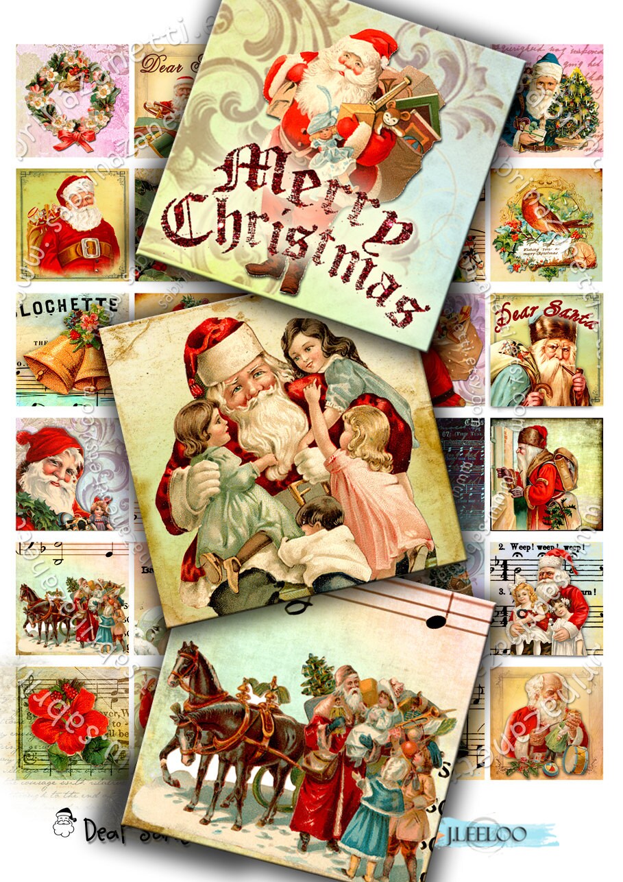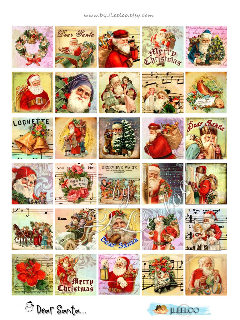 Caro Babbo Natale - Fogli di collage digitale - Immagini quadrate di Natale scaricabili per la stampa di gioielli, ciondoli in resina, cabochon in vetro, ciondoli, magneti, adesivi, album di ritagli, cartellini, una grande scorta per il tuo progetto artigianale.