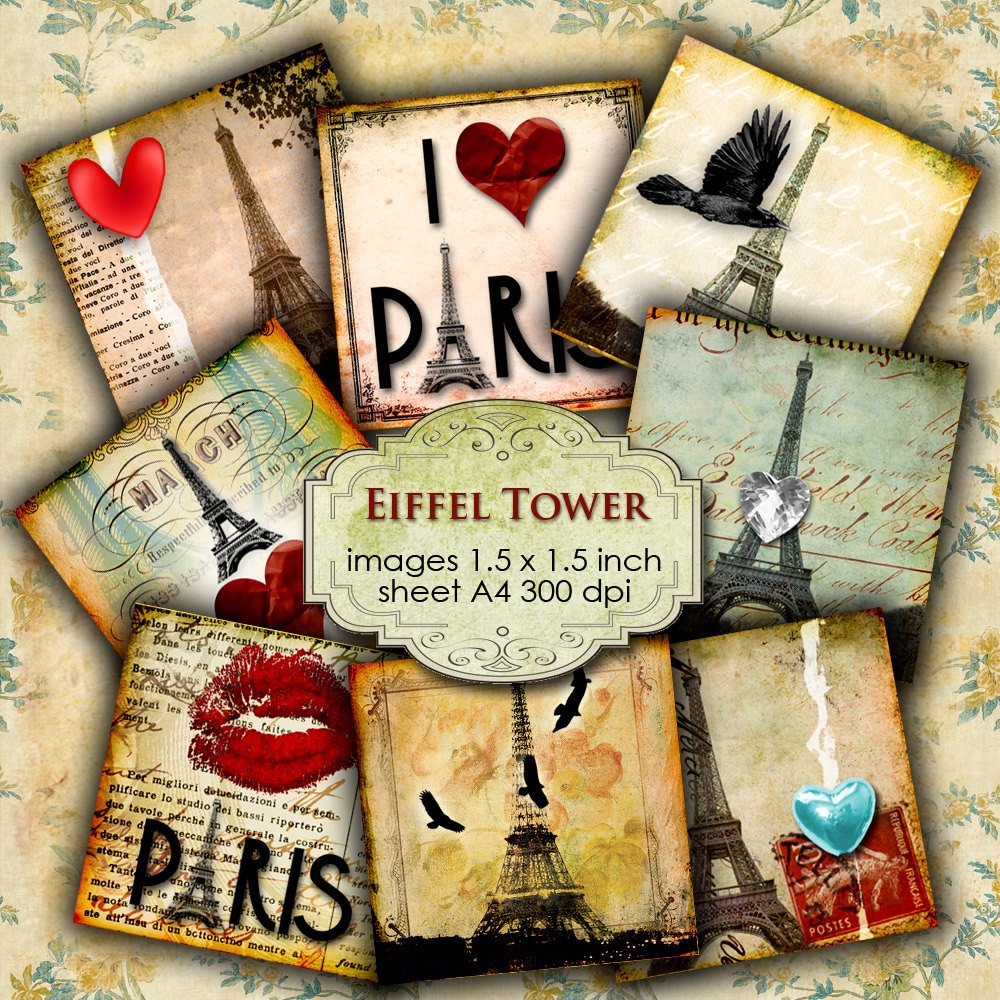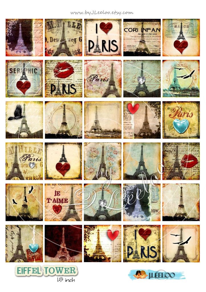 Digital collage sheets - Square images download to print for jewelry, resin pendants, glass cabochon, charms, magnets, stickers, scrap book, hang tags, a great supply for your craft project.