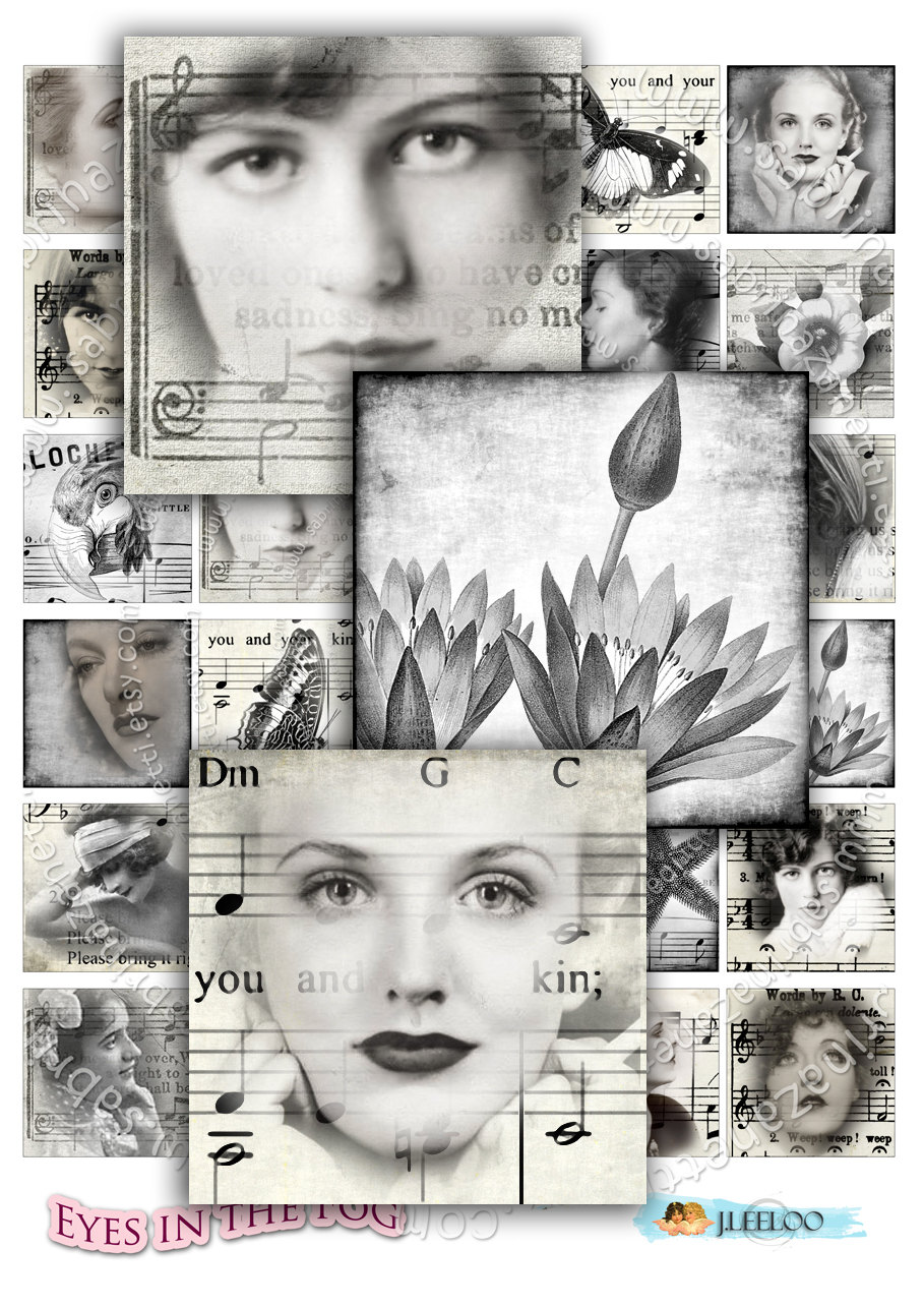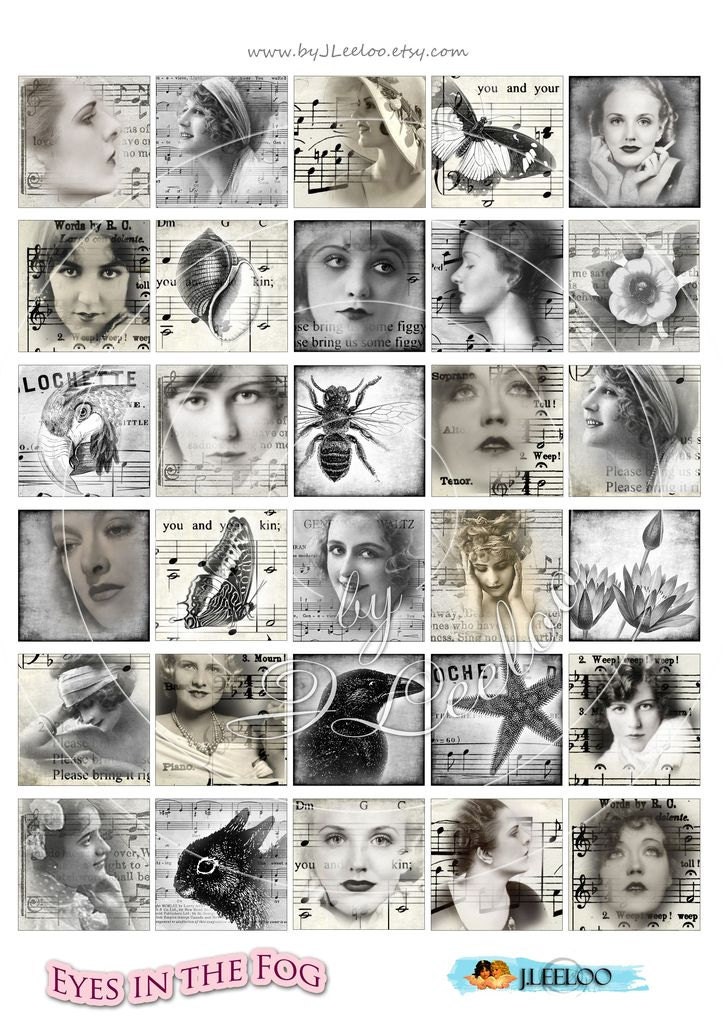 Digital collage sheets - Square images download to print for jewelry, resin pendants, glass cabochon, charms, magnets, stickers, scrap book, hang tags, a great supply for your craft project.