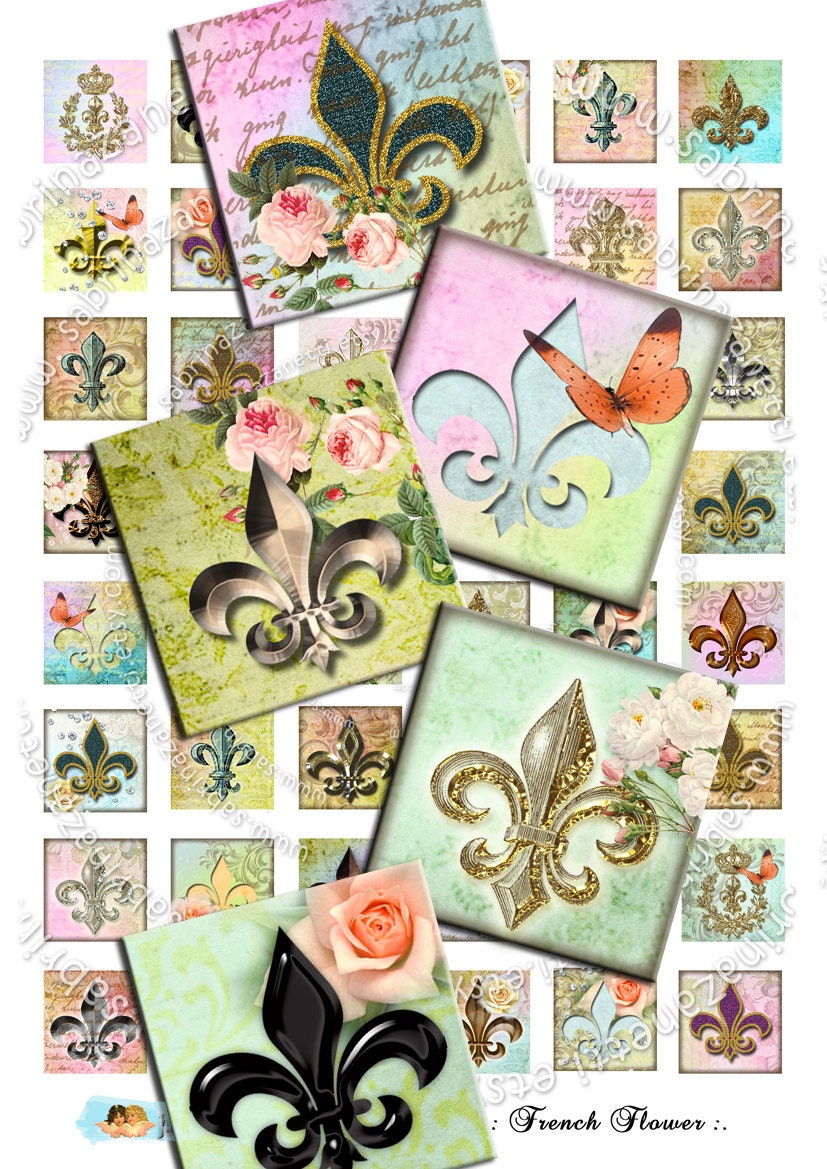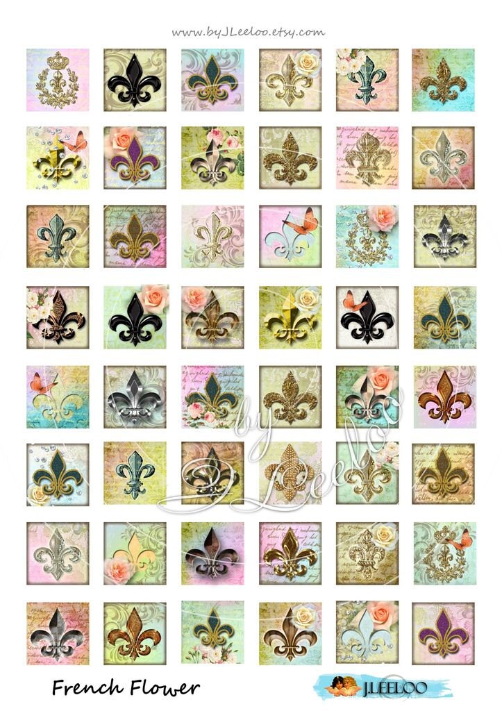 Digital collage sheets - Square images download to print for jewelry, resin pendants, glass cabochon, charms, magnets, stickers, scrap book, hang tags, a great supply for your craft project.