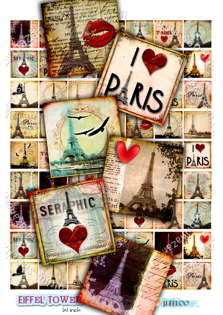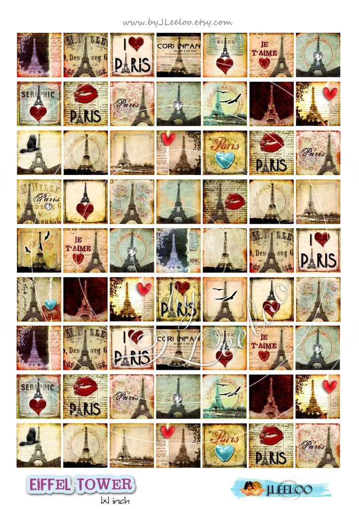 Digital collage sheets - Square images download to print for jewelry, resin pendants, glass cabochon, charms, magnets, stickers, scrap book, hang tags, a great supply for your craft project.