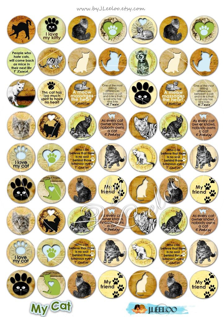 My Cat - Instant download printable - digital collage sheets - circle images for your crafting project - glass cabochons, jewelry, resin pendants, hang tags, rings, earrings and all your need for your art.