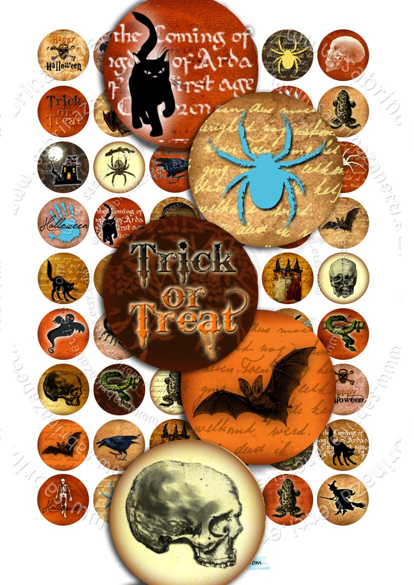 Scary Circle - Instant download printable - halloween digital collage sheets - circle images for your crafting project - glass cabochons, jewelry, resin pendants, hang tags, rings, earrings and all your need for your art.