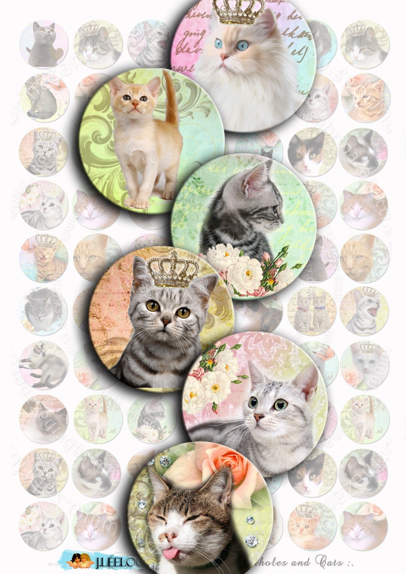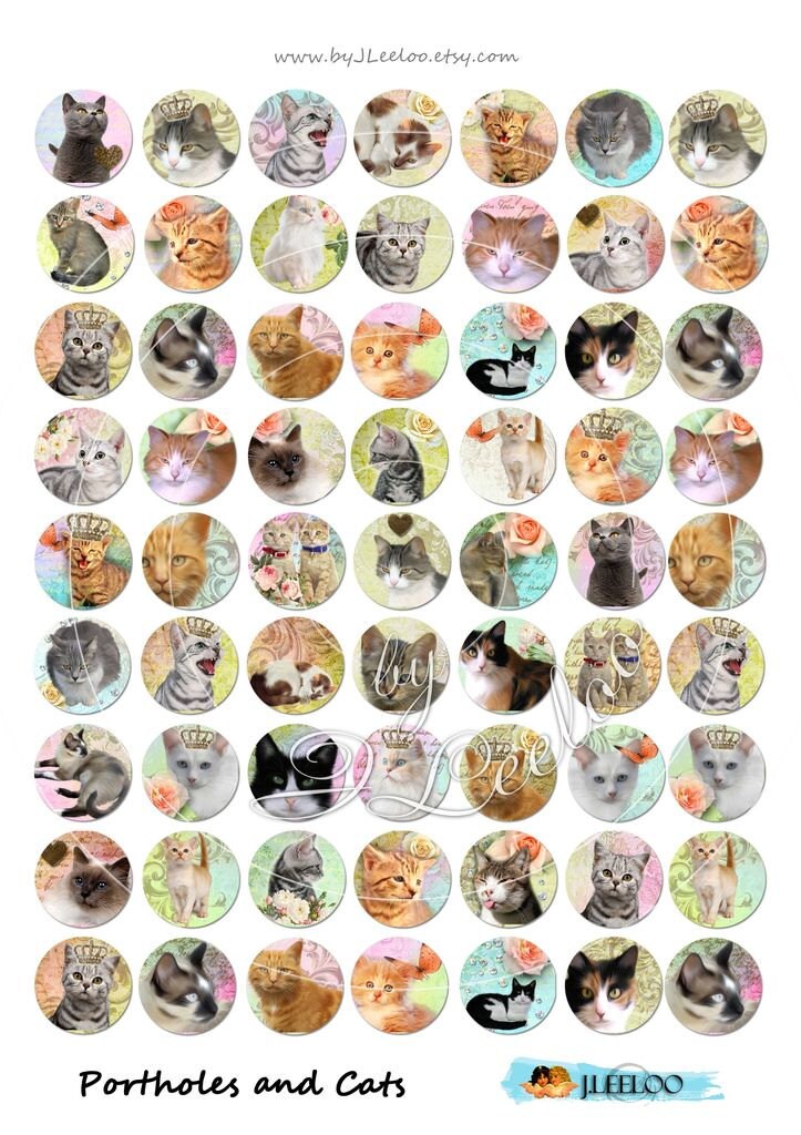 Portholes and Cats - Instant download printable - digital collage sheets - circle images for your crafting project - glass cabochons, jewelry, resin pendants, hang tags, rings, earrings and all your need for your art.