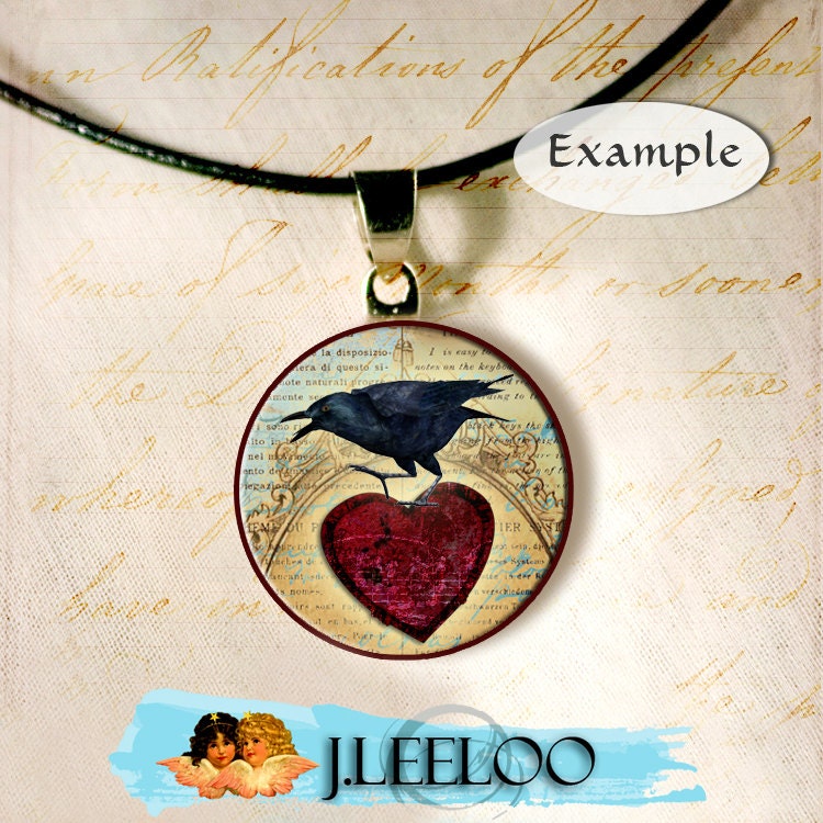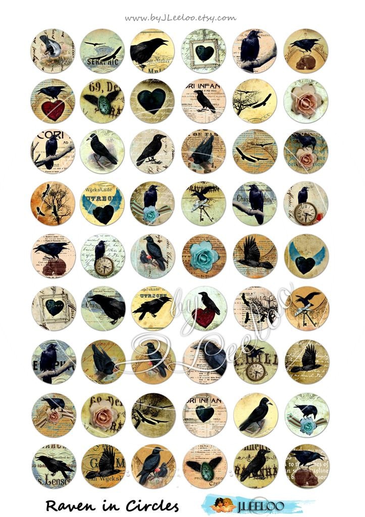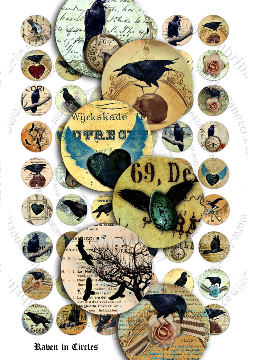 Raven in Circle - Instant download printable - digital collage sheets - circle images for your crafting project - glass cabochons, jewelry, resin pendants, hang tags, rings, earrings and all your need for your art.
