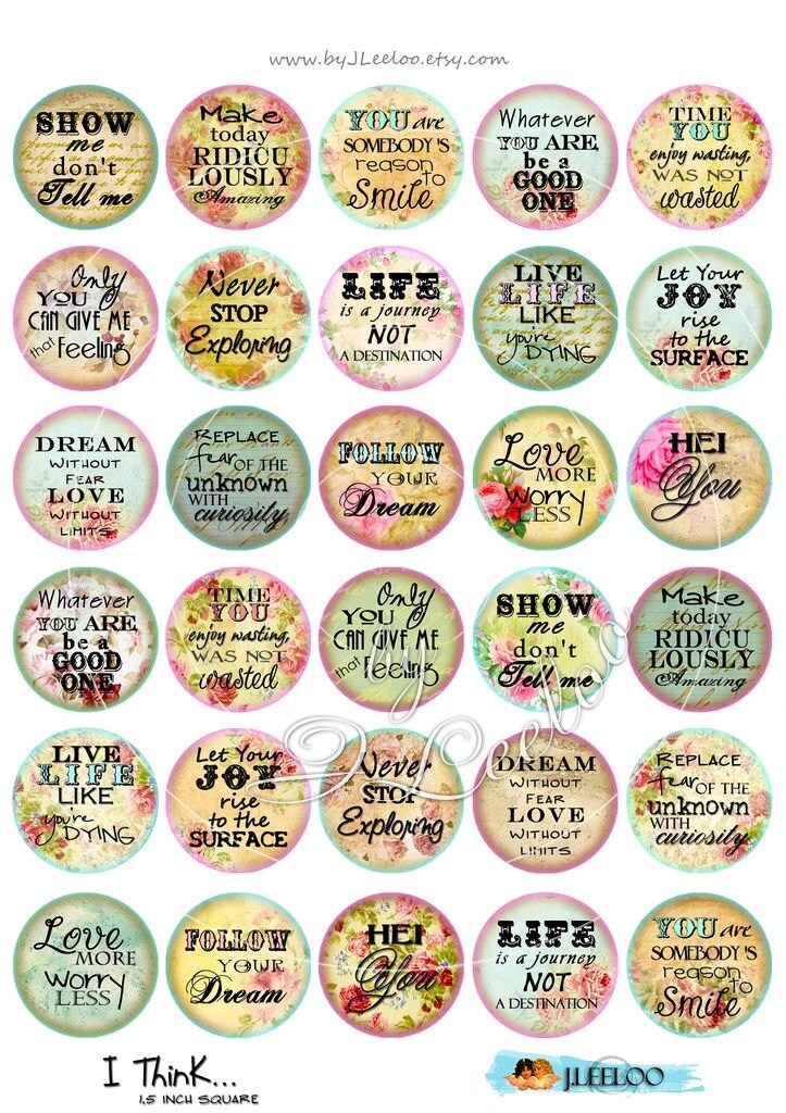 Instant Download - Digital collage sheets - Round printable images for resin pendants, charms, card making, button, magnets, stickers and all your craft project.