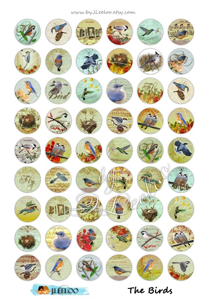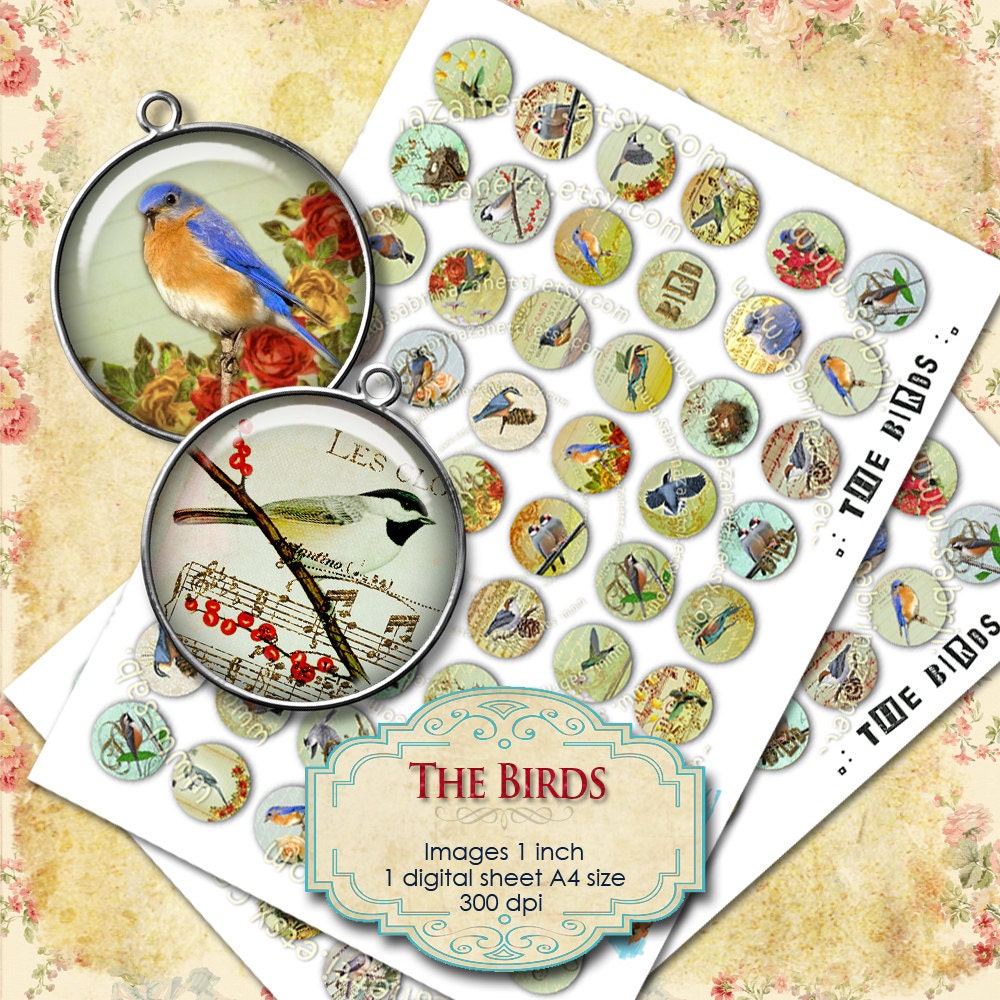 Instant download printable - The Birds digital collage sheets - circle images for your crafting project - glass cabochons, jewelry, resin pendants, hang tags, rings, earrings and all your need for your art.