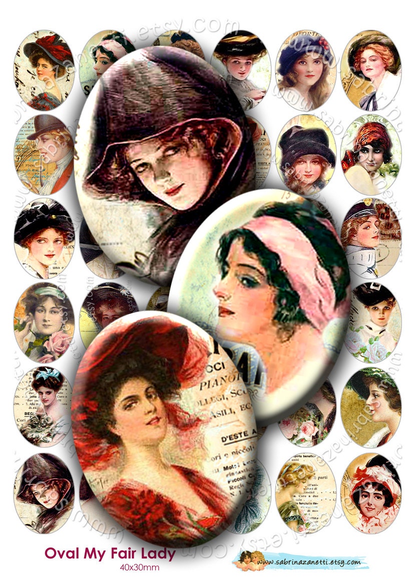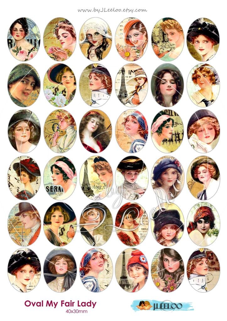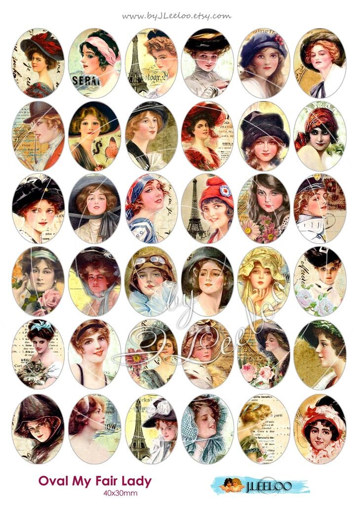 Instant Download - Digital collage sheets printable - Digital paper - Oval digital images 30x40mm for pendants, jewelry and your craft and artwork.