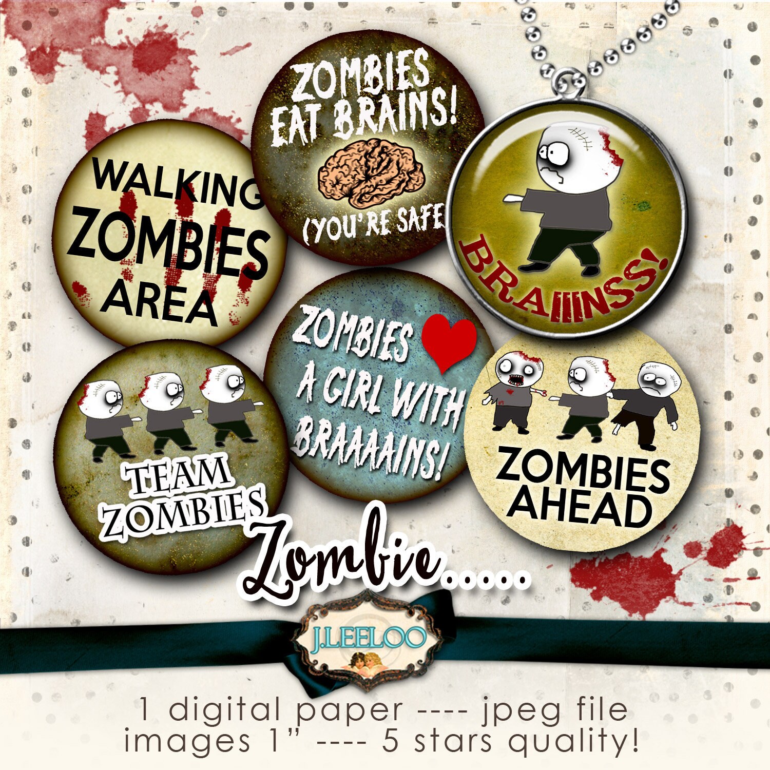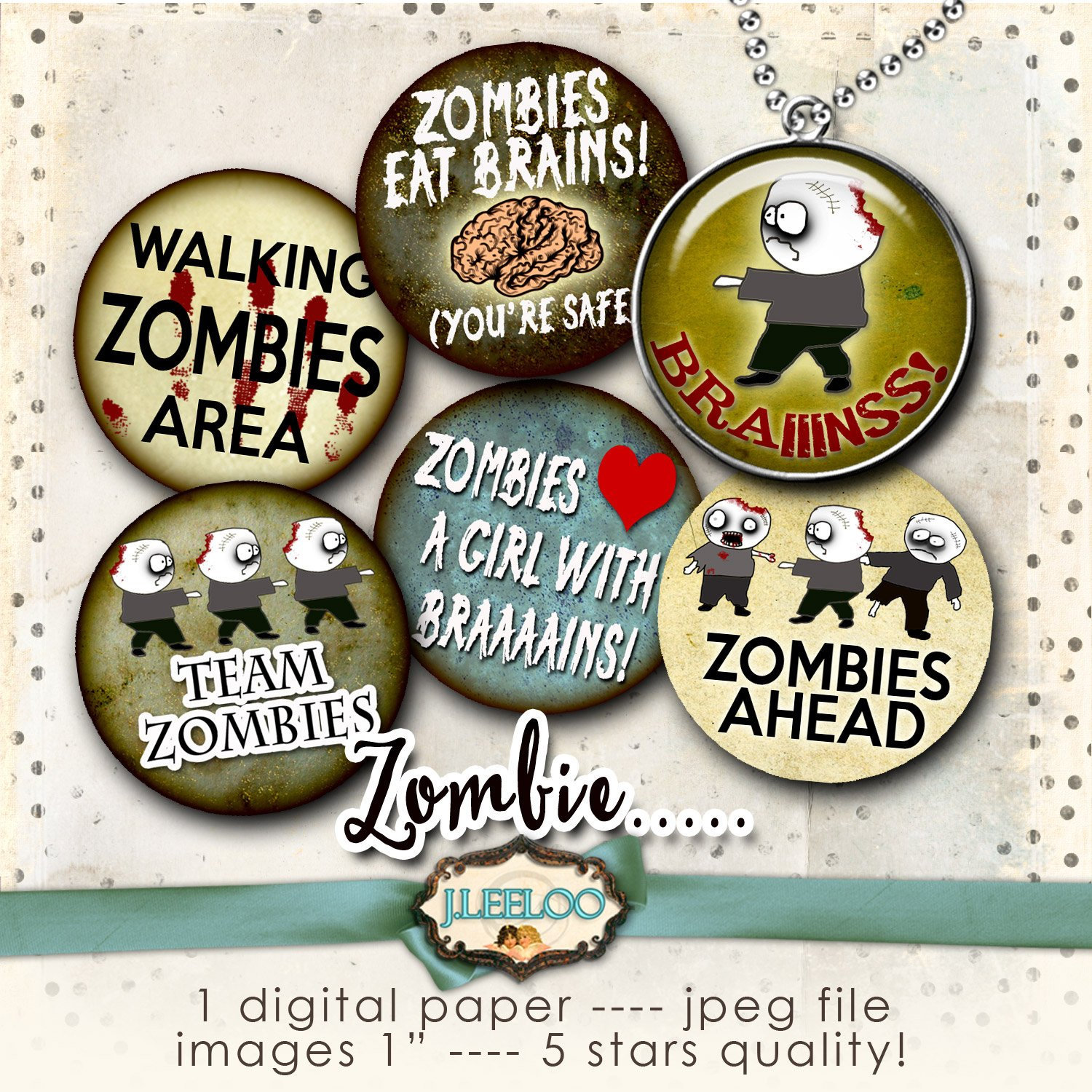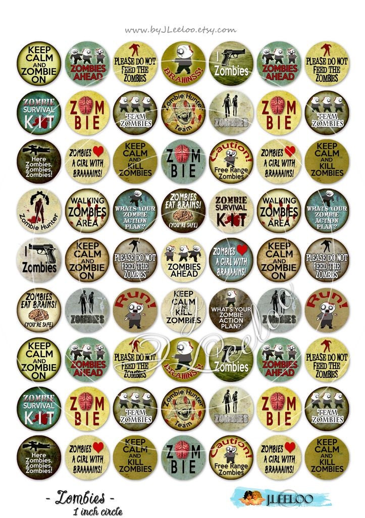 Zombies - Instant download printable - digital collage sheets - circle images for your crafting project - glass cabochons, jewelry, resin pendants, hang tags, rings, earrings and all your need for your art.
