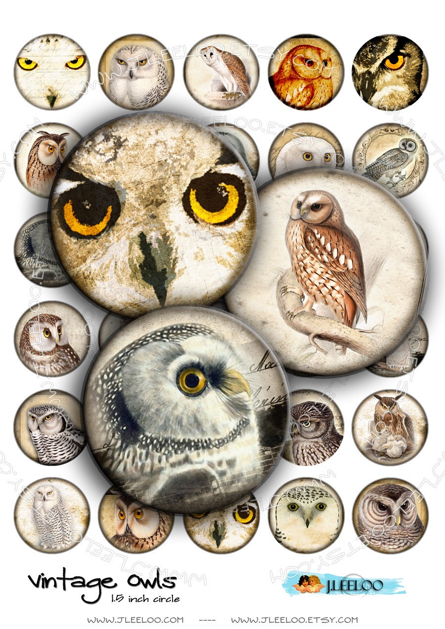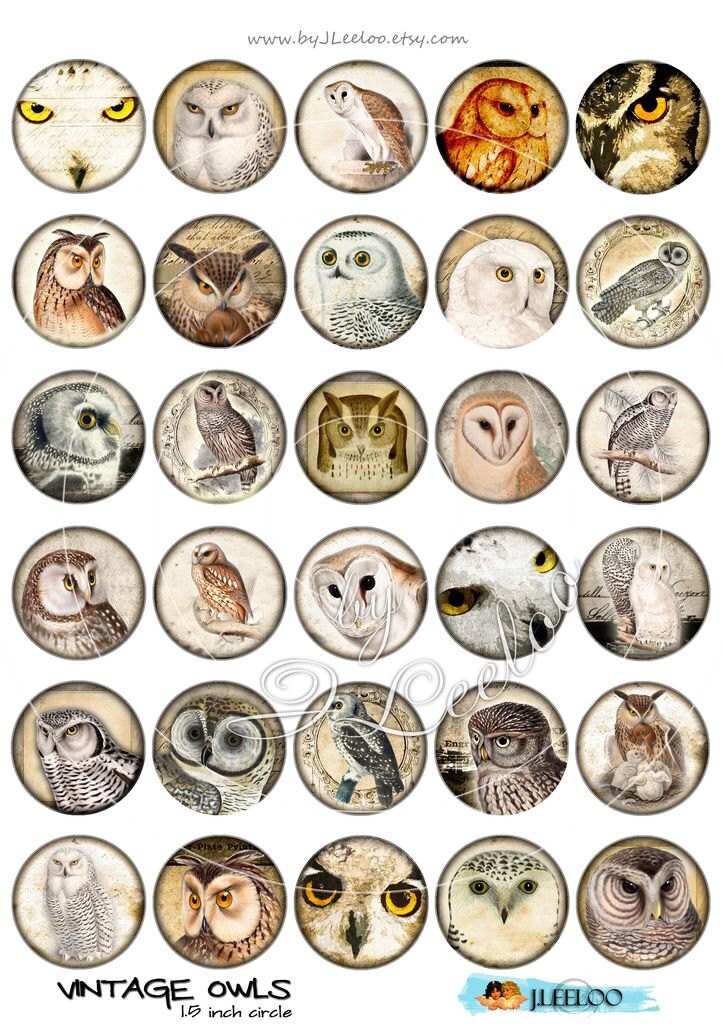VINTAGE OWL Instant Download - Digital collage sheets - Round printable images for resin pendants, charms, card making, button, magnets, stickers and all your craft project.