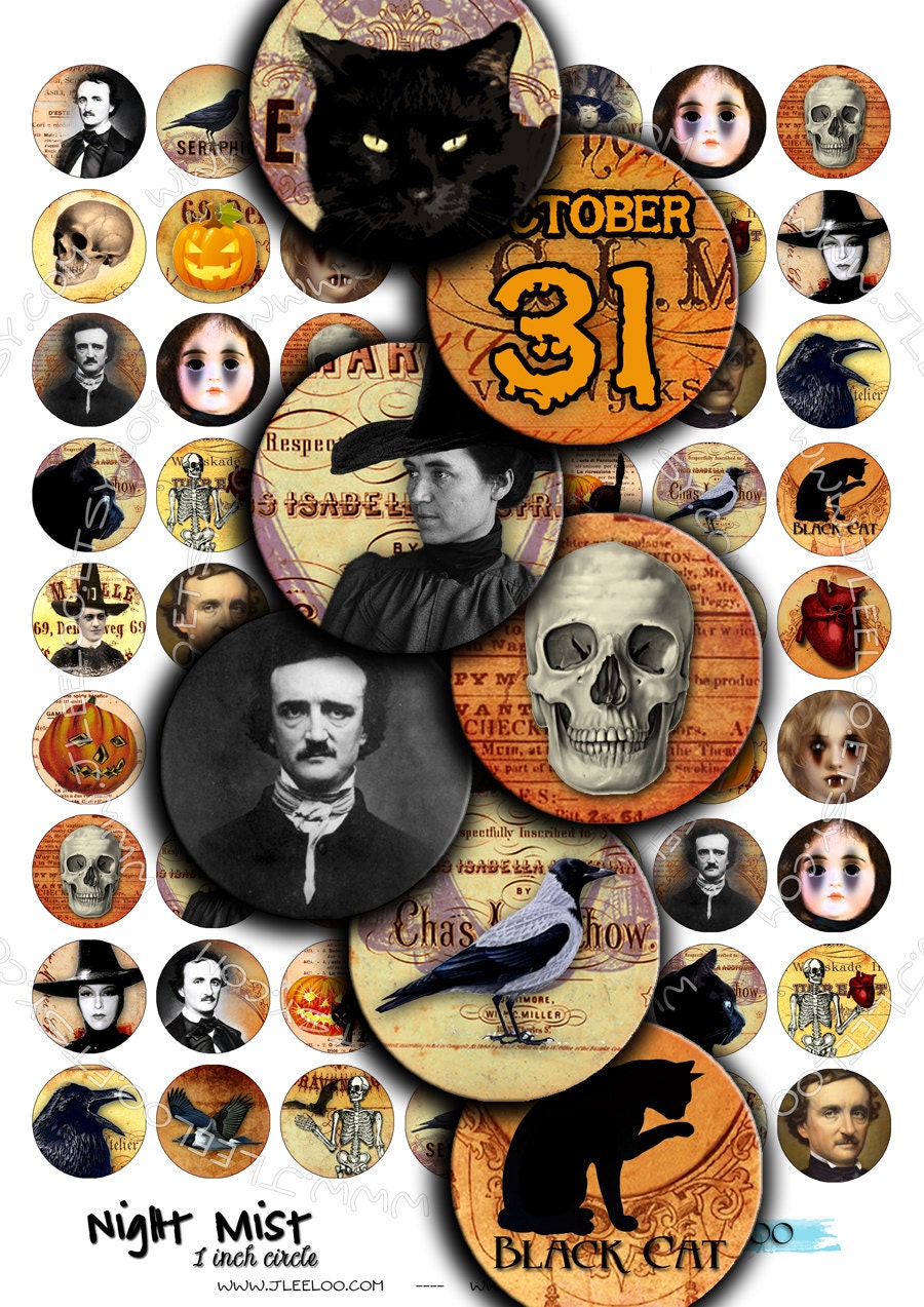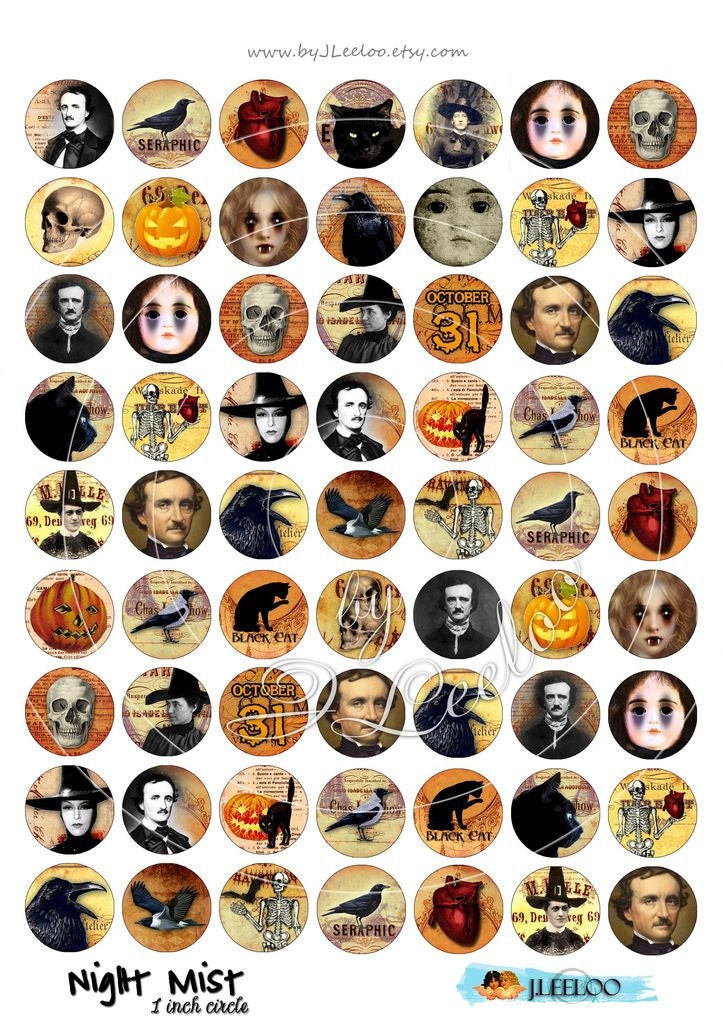 Night Mist - Instant download printable - Gothic digital collage sheets - circle images for your crafting project - glass cabochons, jewelry, resin pendants, hang tags, rings, earrings and all your need for your art.