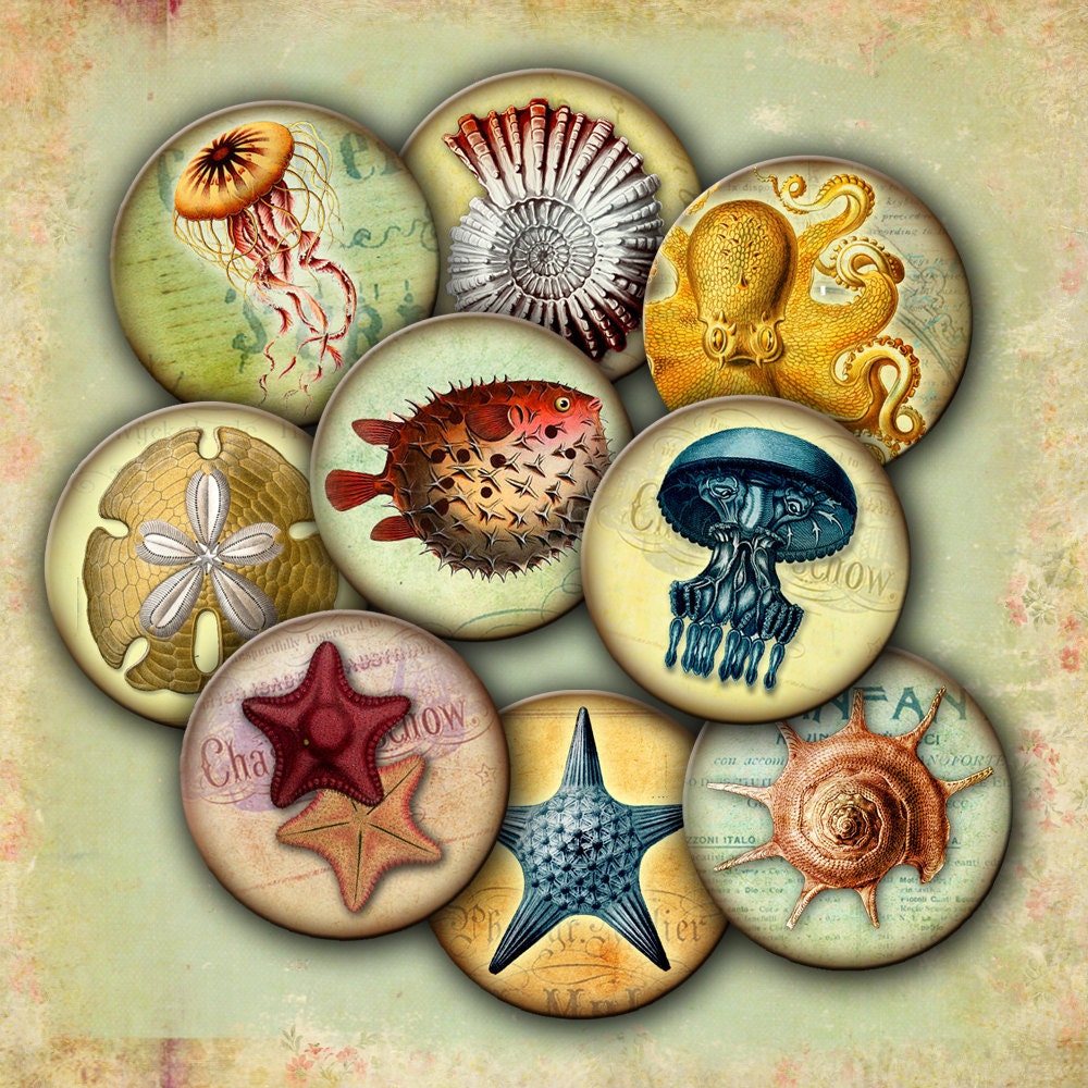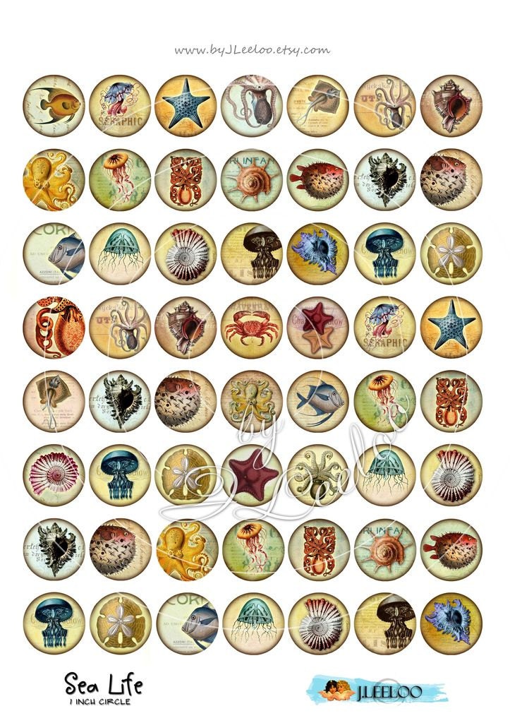 Sea Life - Instant download printable - digital collage sheets - circle images for your crafting project - glass cabochons, jewelry, resin pendants, hang tags, rings, earrings and all your need for your art.