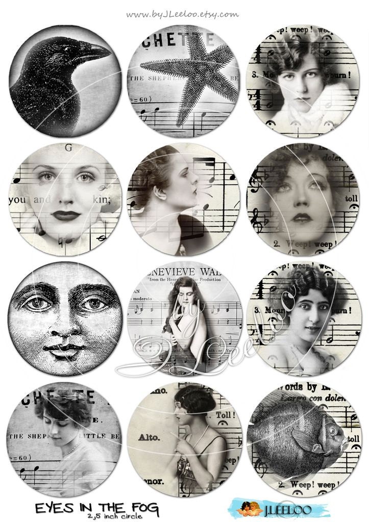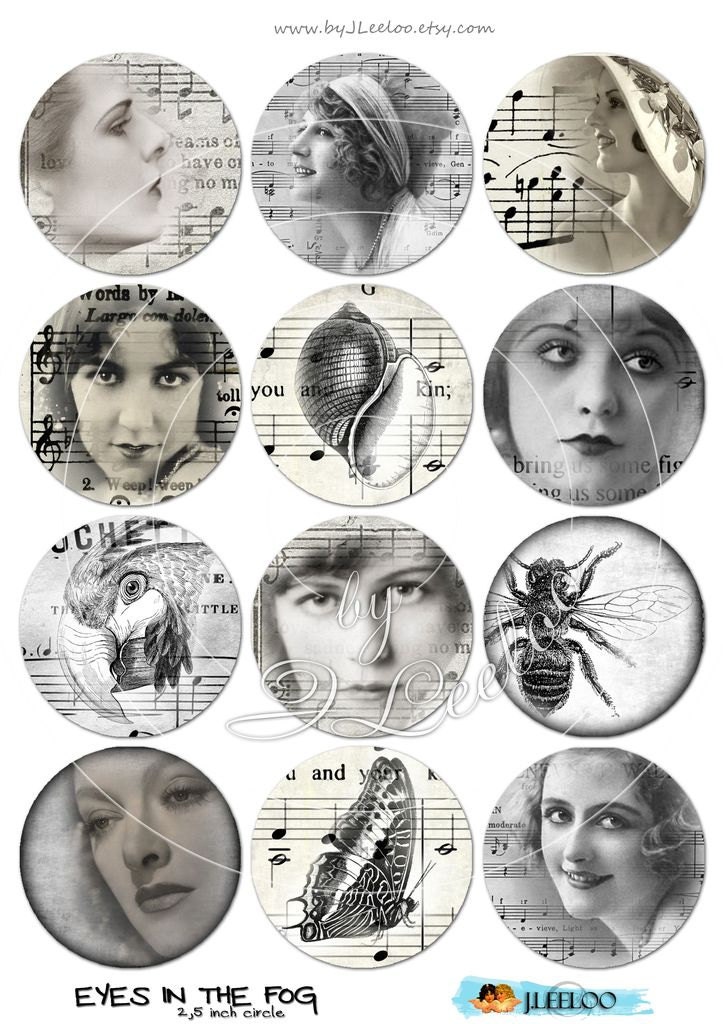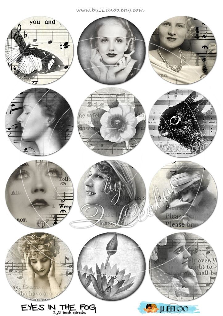Digital collage sheets - Circles images instant download ready to print for your jewelry making, resin pendants, rings, earrings and button, for magnets, stickers, scrapbook and your others craft project.