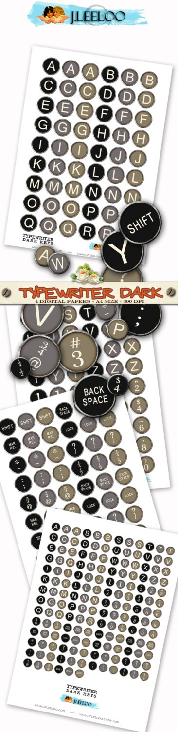 Typewriter - Instant download printable - digital collage sheets - circle alphabet images for your crafting project - glass cabochons, jewelry, resin pendants, hang tags, rings, earrings and all your need for your art.