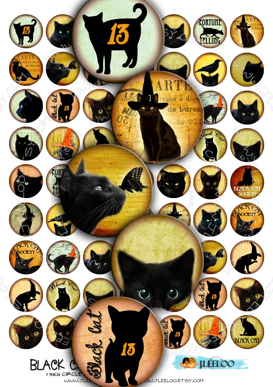 Black Cats - Instant download printable - goth digital collage sheets - circle images for your crafting project - glass cabochons, jewelry, resin pendants, hang tags, rings, earrings and all your need for your art.
