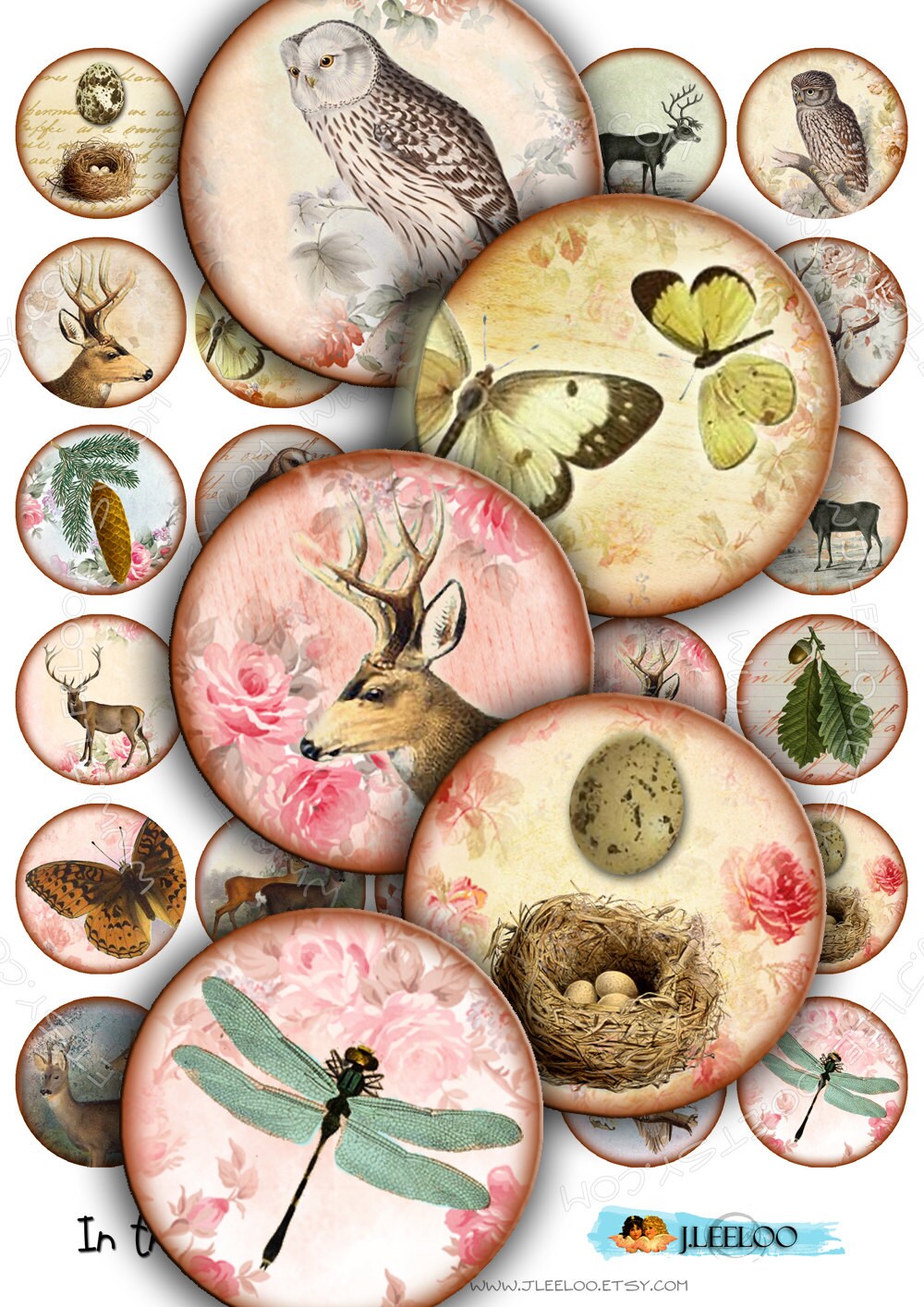 Instant Download - Digital collage sheets - Circle printable images for jewelry, glass cabochons, bottle caps, stickers, hang tags and all your artwork.