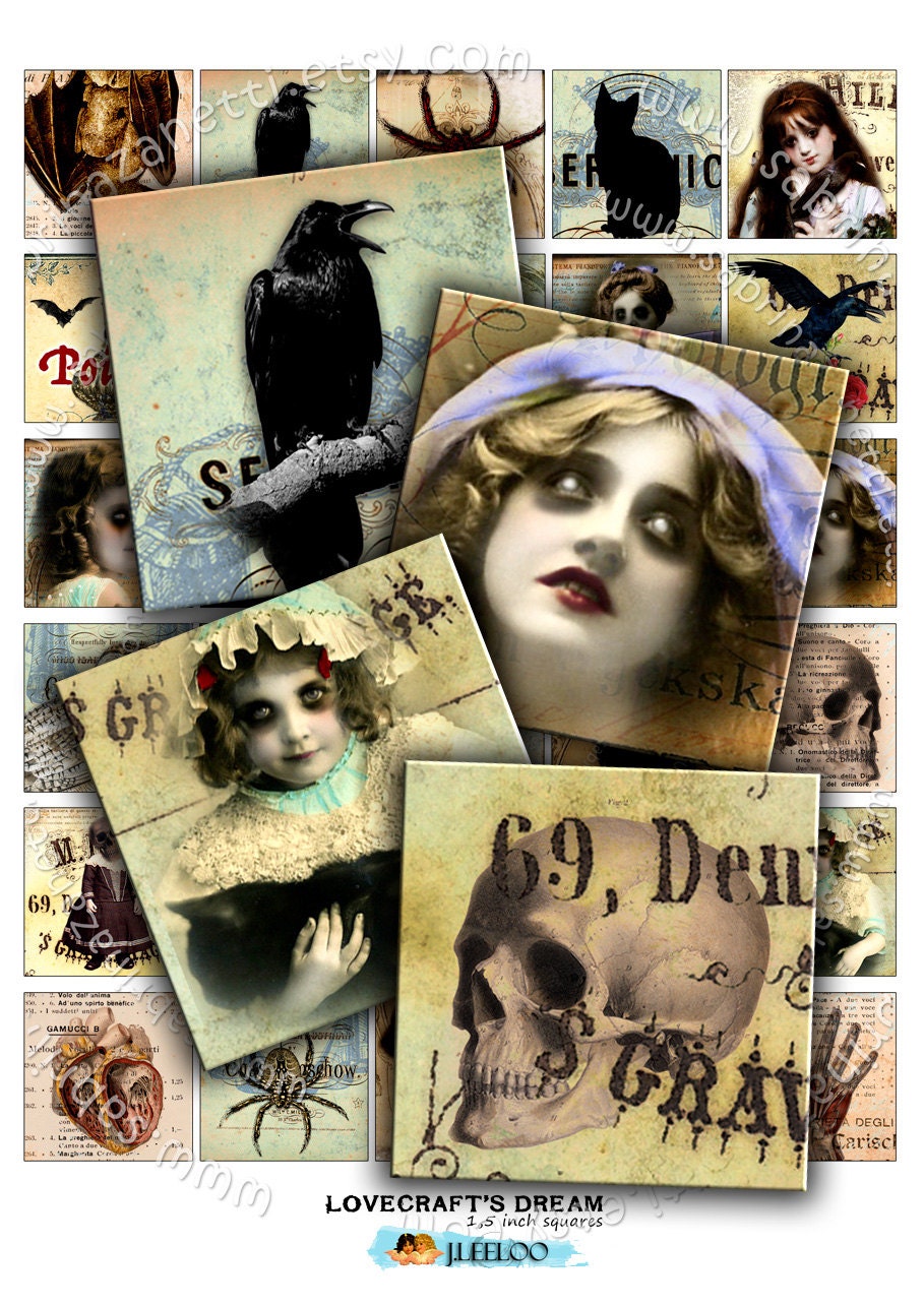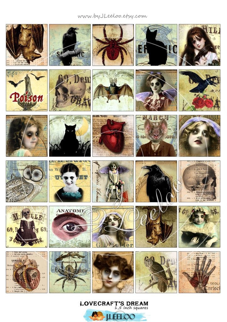 Digital collage sheets - Square images download to print for jewelry, resin pendants, glass cabochon, charms, magnets, stickers, scrap book, hang tags, a great supply for your craft project.