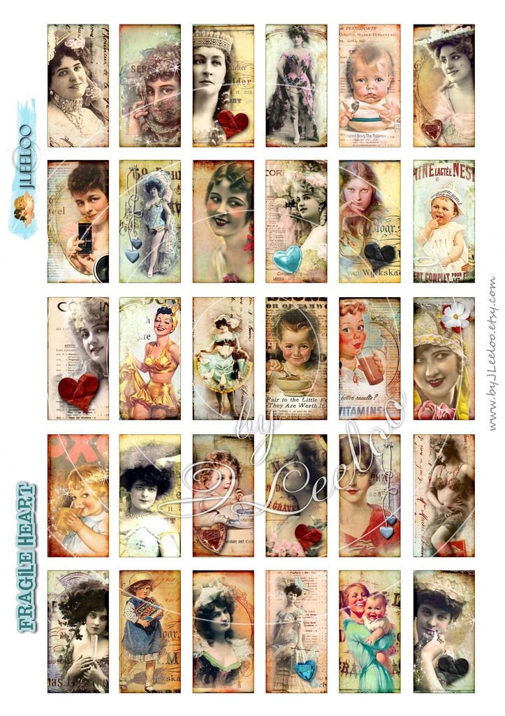 Fragile - Digital paper sheet download - Images to print for jewelry making, domino tiles, scrabble tiles, scrapbooking, magnets, art and crafts.