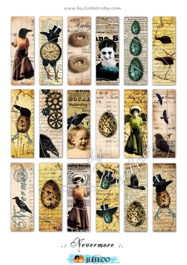 Nevermore - Digital paper sheet download - Images to print for jewelry making, domino tiles, scrabble tiles, scrapbooking, magnets, art and crafts.