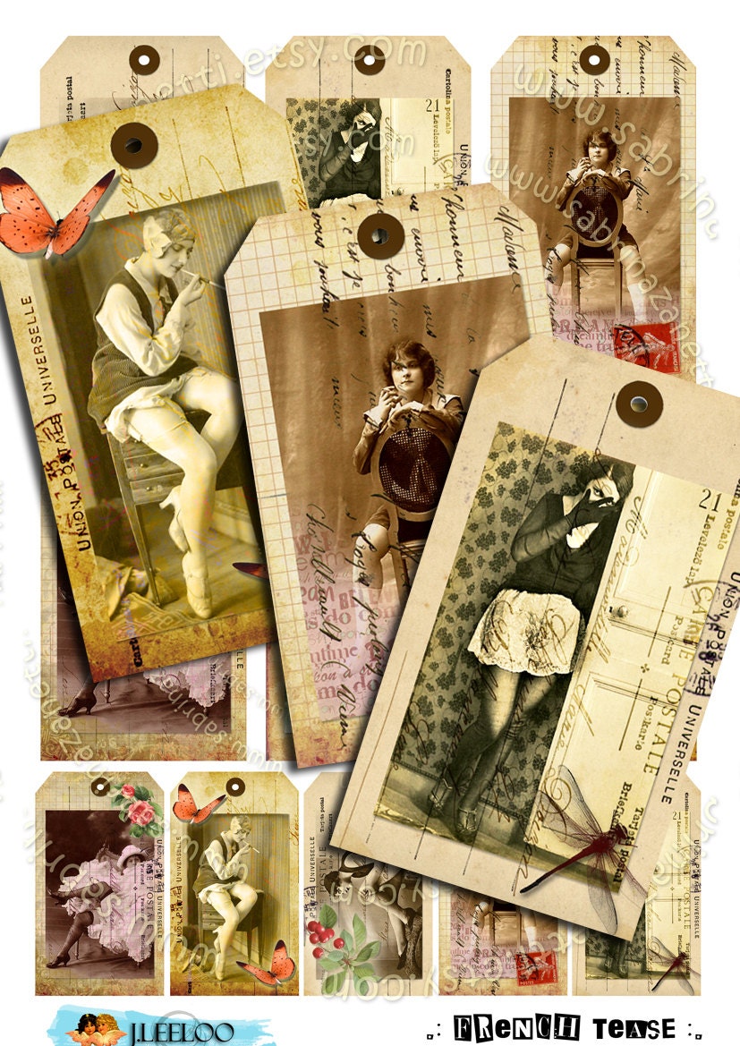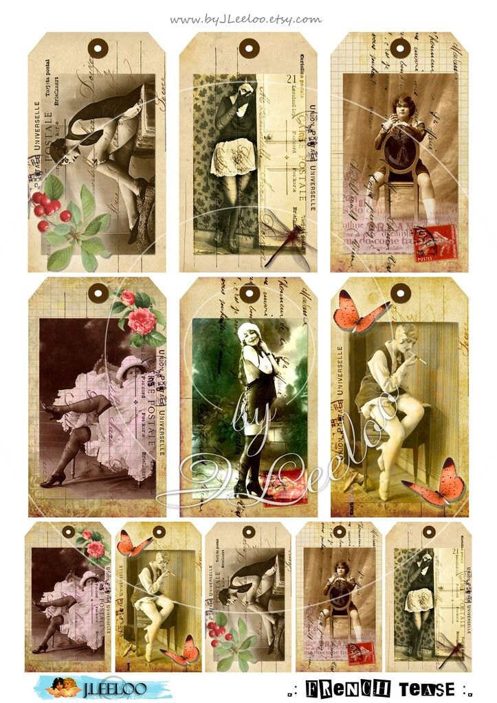French Tease - Digital collage sheets: download and print for hang tags, labels, scrapbook, jewelry holders, cards, and your others craft project.