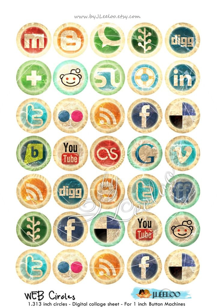 Instant Download - Digital collage sheet - Digital papers - Circle images for button machine, round clipart for jewelry, craft and artwork.