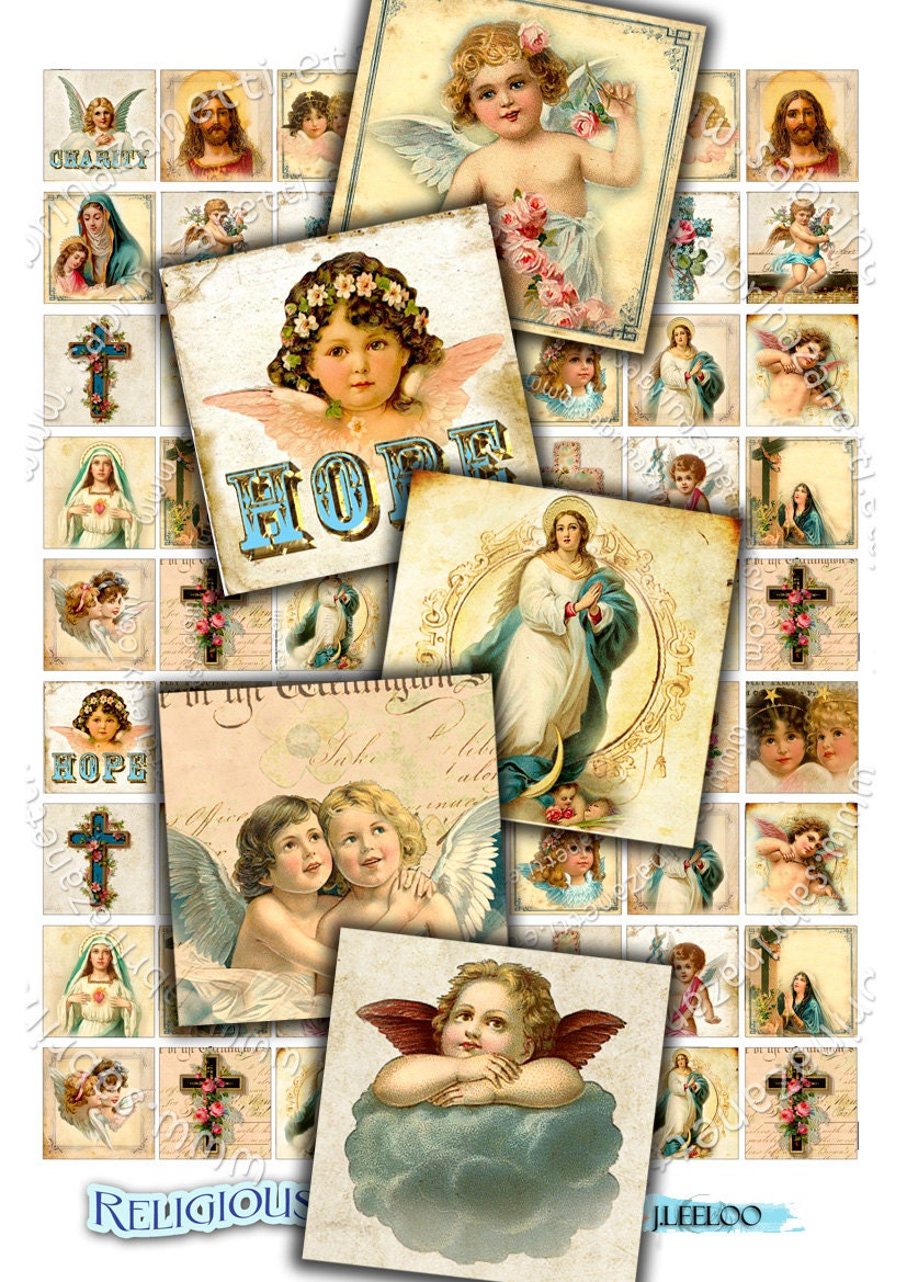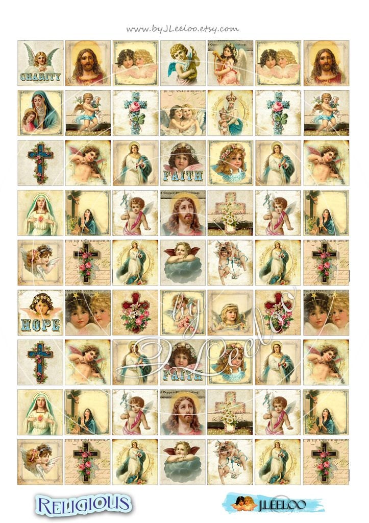 Religious - Digital collage sheets - Christmas square images download to print for jewelry, resin pendants, glass cabochon, charms, magnets, stickers, scrap book, hang tags, a great supply for your craft project.