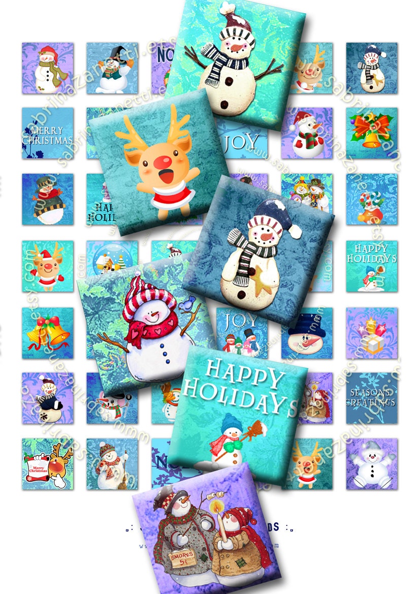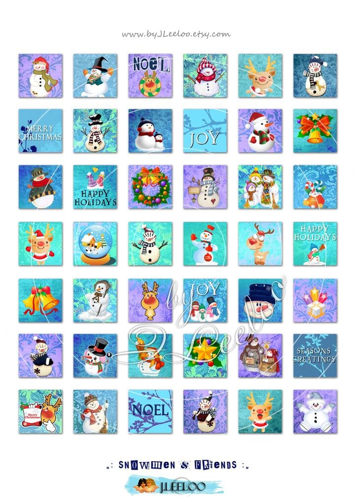 Snowmen - Digital collage sheets - Square images download to print for jewelry, resin pendants, glass cabochon, charms, magnets, stickers, scrap book, hang tags, a great supply for your craft project.