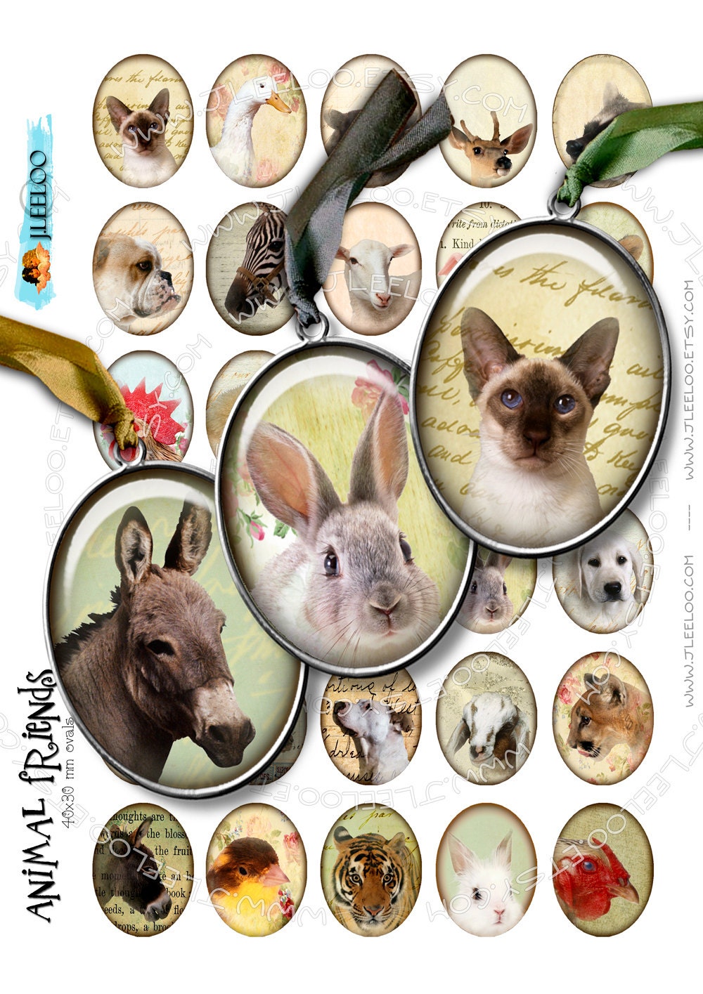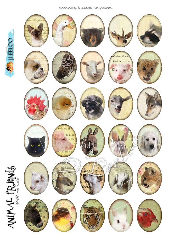 Instant Download - Digital collage paper - Digital collage sheet - Oval digital images 30x40mm for pendants, jewelry and your craft and artwork.