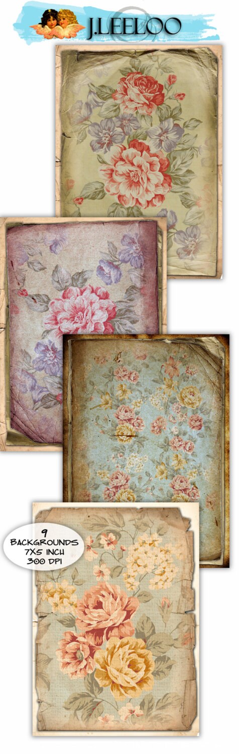 Instant Download - Shabby chic Digital collage sheets - Flower digital paper - Large images for scrapbook, paper goods, background.