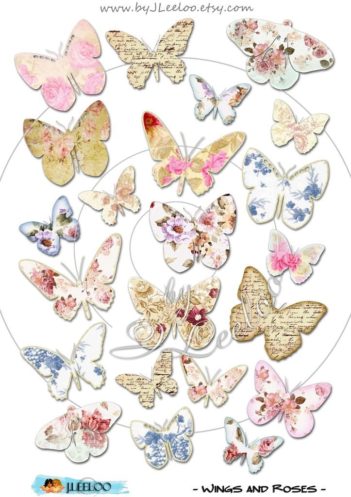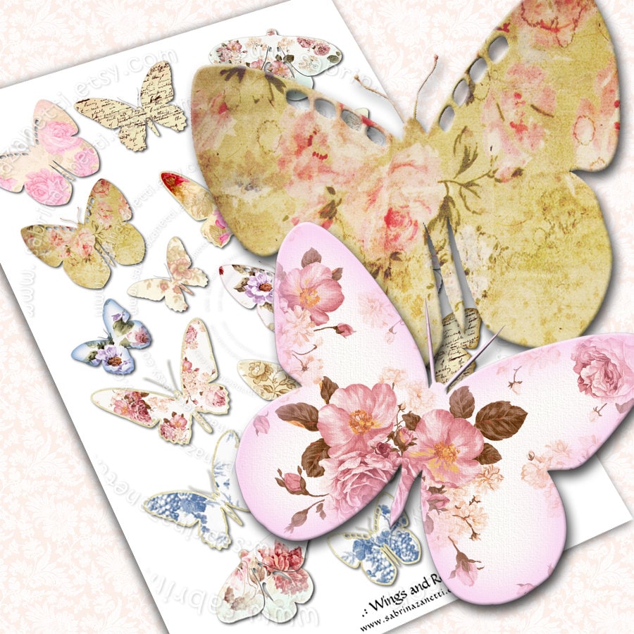 Wings and Roses - Digital images shabby chic for your crafting project - Download to print for scrapbooks, invitations, journaling, hang tags, card making, collages... a great supply for your artwork.