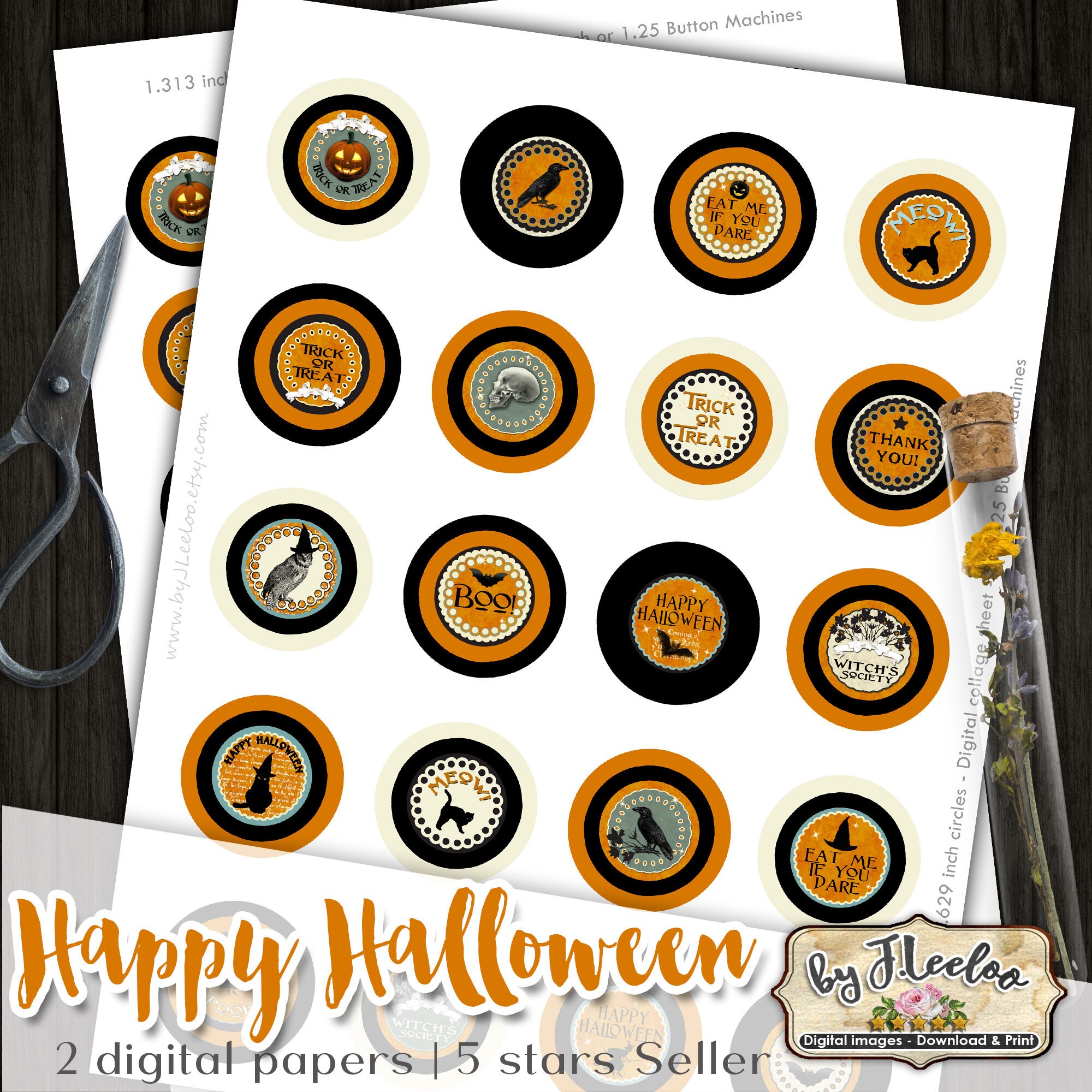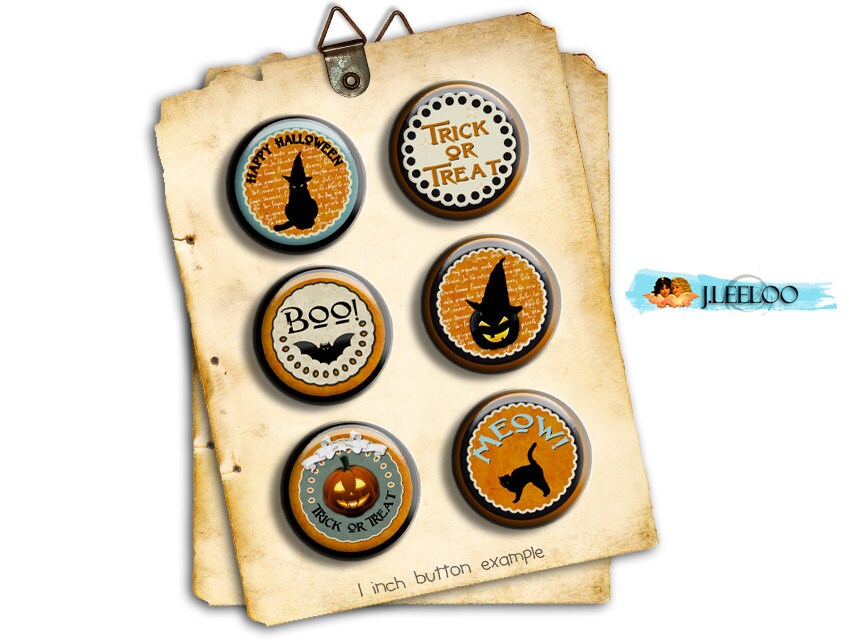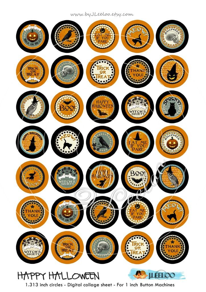 HAPPY HALLOWEEN Instant Download - Digital paper - Digital collage sheet - Circle images for button machine, round clipart for jewelry, craft and artwork.
