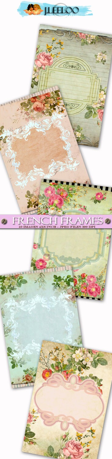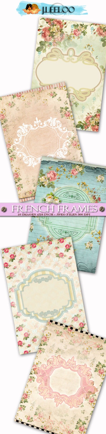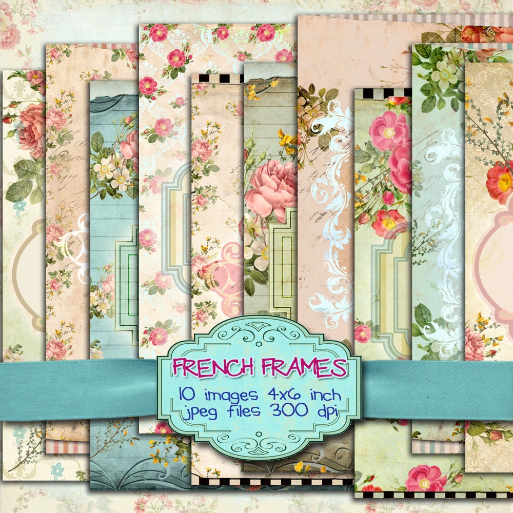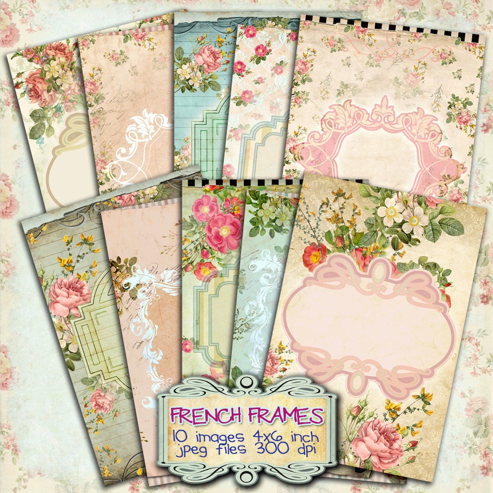 Digital collage sheet - Shabby Chic digital papers: french images for your artwork, postcards, hang tags, invitations, greeting cards, annuncements, scrapbook, backing cards.... all for your crafting project!