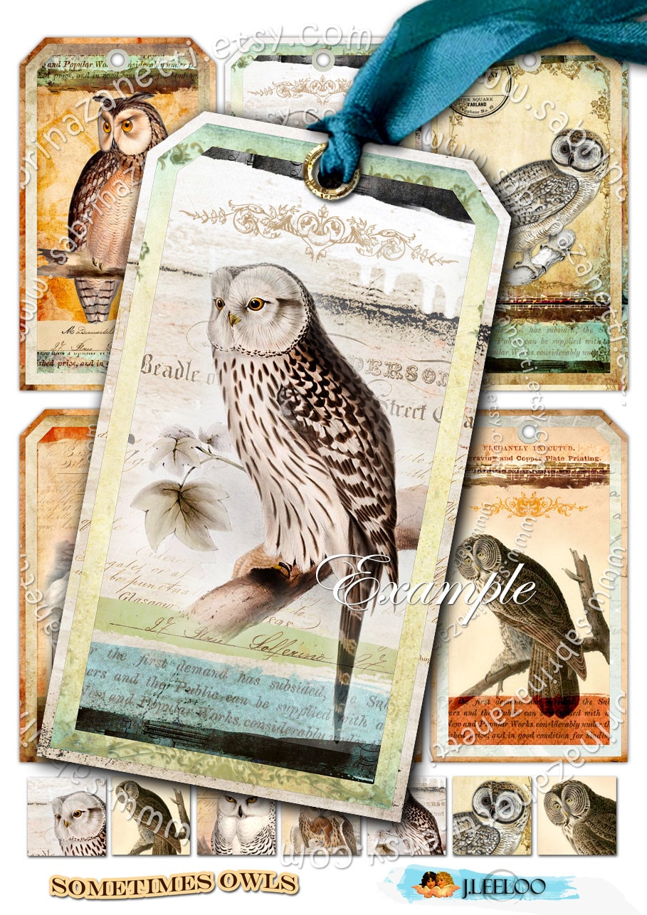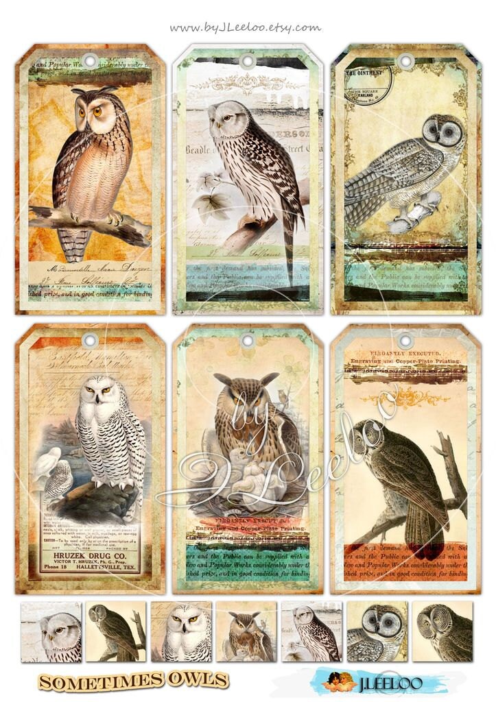 Sometimes Owls - Digital collage sheets: download and print for hang tags, labels, scrapbook, jewelry holders, cards, and your others craft project.
