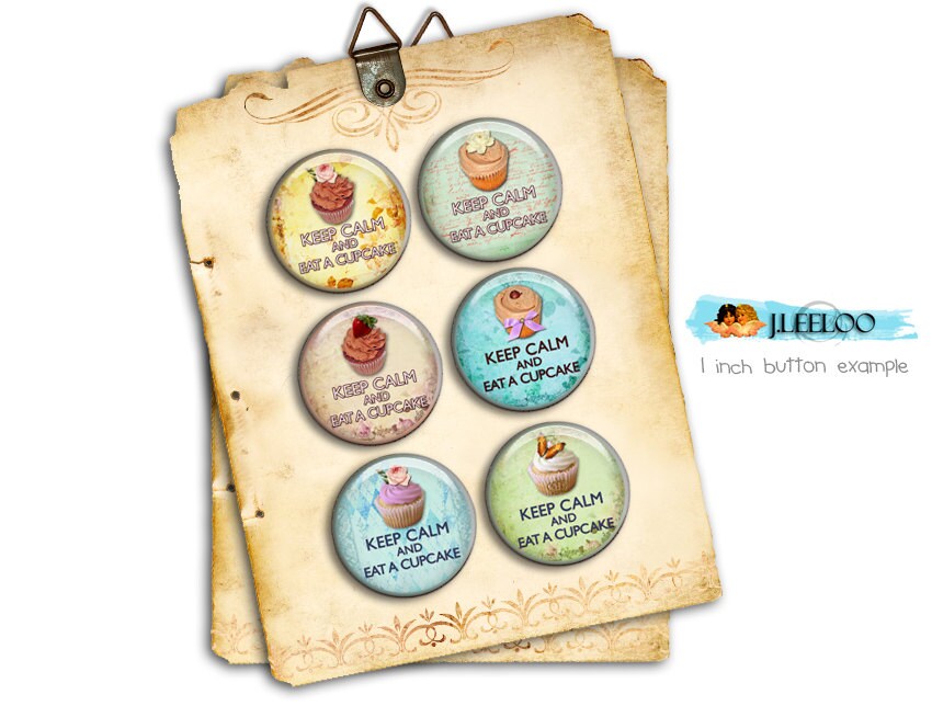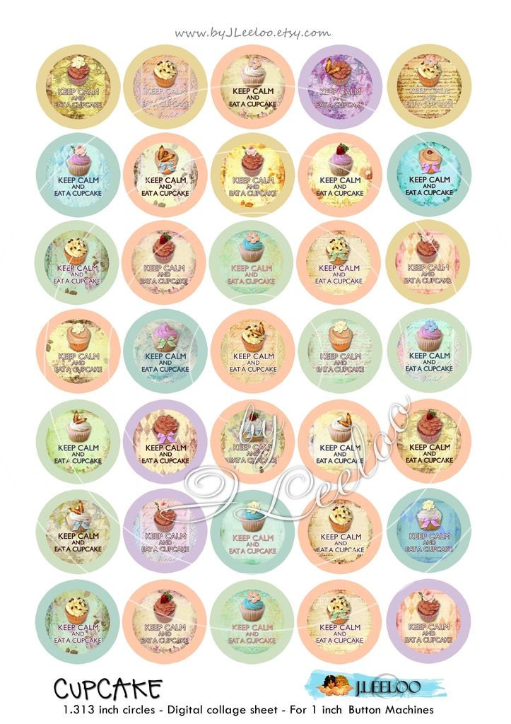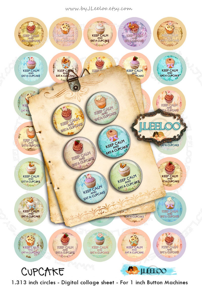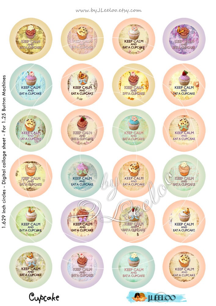 CUPCAKE Instant Download - Digital collage sheet - Digital papers - Circle images for button machine, round clipart for jewelry, craft and artwork.