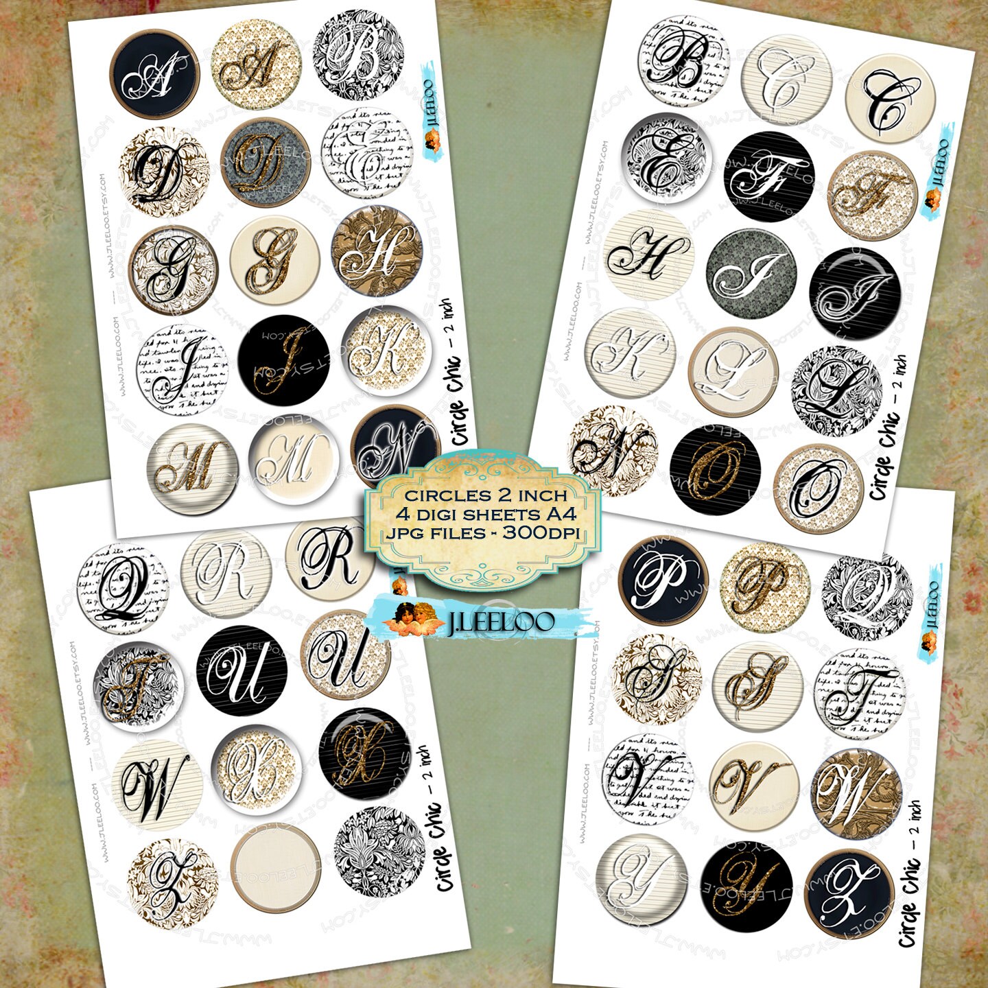 Instant Download - Circle images alphabet digital papers - Digital collage sheet - Round images for tags, mirror, magnets, badges, jewelry