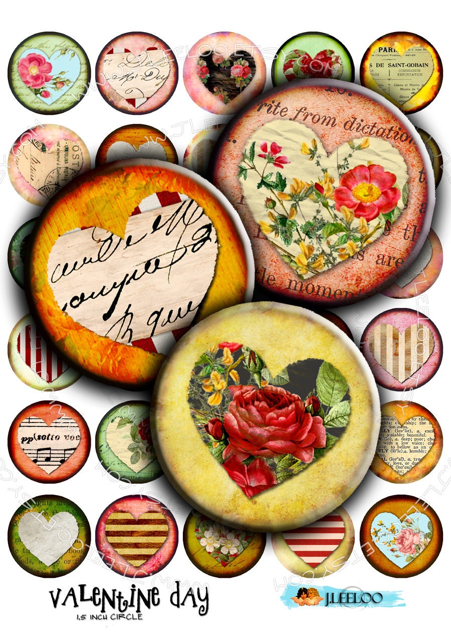 Instant Download - Digital collage sheets - Circle printable images for jewelry, glass cabochons, bottle caps, stickers, hang tags and all your artwork.